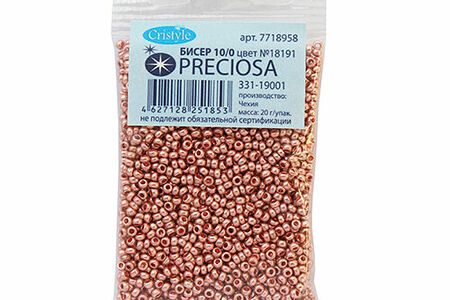 Чешский бисер Preciosa – аккуратно откалиброванный, однородный по размеру и без бракованных элементов. Имеет круглую форму – это универсальная форма, которая подходит и для вышивки, и для плетения украшений, фигурок, других поделок. Бисеру из чешского стекла доверяют мастерицы во всем мире. Он сохраняет цвет и яркость длительное время, в том числе под воздействием косметики, пота, при длительном контакте с кожей. Вышитые бисером изделия допускается стирать в ручном режиме при температуре до 40 градусов Цельсия. Тип: solgel металлик. Размер: 10/0 (2,3 мм). Объем: расфасован в пакетики по 20 г.