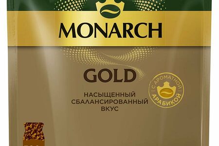Богатый, насыщенный вкус и волшебная сила Аромагии остаются с вами в каждой чашке кофе Monarch. Мы сохраняем высокое качество и традиции производства, чтобы вы всегда могли наслаждаться любимым кофе. Кофе Monarch Gold создан из специально отобранных зерен мягкой обжарки и подарит вам насыщенный сбалансированный вкус и утонченный аромат.Состав: 100% натуральный кофе.Вид кофе: растворимый сублимированный.Способ приготовления: положите в чашку одну-две чайные ложки кофе Jacobs Gold. Добавьте горячую, но не кипящую воду.Вес: 500 г.Тип упаковки: вакуумный пакет.Условия хранения: хранить в сухом прохладном месте.Страна производства: Россия.