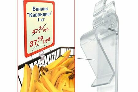 Держатель-зажим для рамки POS на край полки/корзины/коробки толщиной до 16 мм, прозрачный, 290279, (5 шт.) доставка