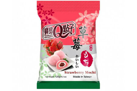 Моти - традиционные японские пирожные из клейкой рисовой муки. Сладкая клубника замечательно сочетается с мягким сливочным вкусом рисового десерта.
