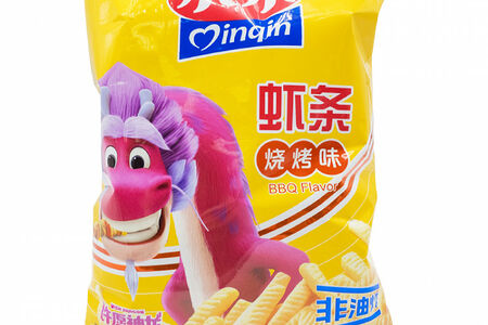 Хрустящие крекеры со вкусом креветок и барбекю от Qinqin. Состав: пшеничная мука, кукурузный крахмал, крахмал тапиоки, растительное масло, креветки, сахар, соль, глутамат натрия, искусственный ароматизатор Барбекю (искусственный куриный порошок, мальтодекстрин, соль, сахар, дрожжевой экстракт, луковый порошок, чесночный порошок, молотый перец чили, имбирный порошок, ароматизатор, Е551), регулятор кислотности (Е500i, Е503ii), антиоксидант (Е319). Пищевая и энергетическая ценность на 100 г продукта: 2008 кДж, белки 6,1 г, жиры 20,1 г, углеводы 68,3 г, натрий 647 мг. Срок годности: 10 месяцев.