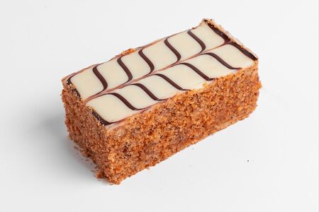 Ореховый бисквит на основе миндальной муки и грецкого ореха, покрытый нежным сливочным кремом (с добавлением ликёра Амаретто) и бельгийским шоколадом