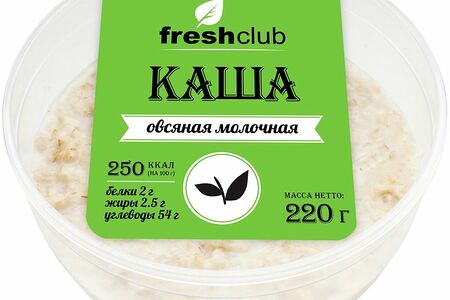 Срок годности в днях: 10Состав: Молоко питьевое топлёное 4% (молоко цельное, молоко обезжиренное), вода питьевая, хлопья овсяные, сахар, соль пищевая, комплексная пищевая добавка Константа микс (вода, модифицированные целлюлозные волокна, регуляторы кислотности: Е260 и Е330, антиокислитель Е300, соль йодированная).Пищевая ценность: Калорийность: 250Белки: 2Жиры: 2.5Углеводы: 54Страна изготовления: РоссияПроизводитель: Freshclub