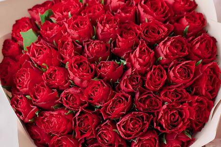 Букет из 51 красной розы 40 см (Кения) в кремовой пленке доставка
