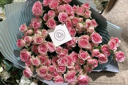 Букет из 25 розовых кустовых роз 40 см (Кения). доставка