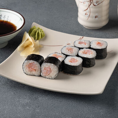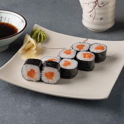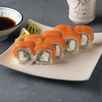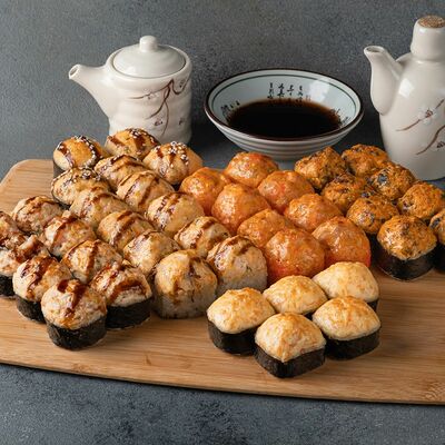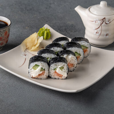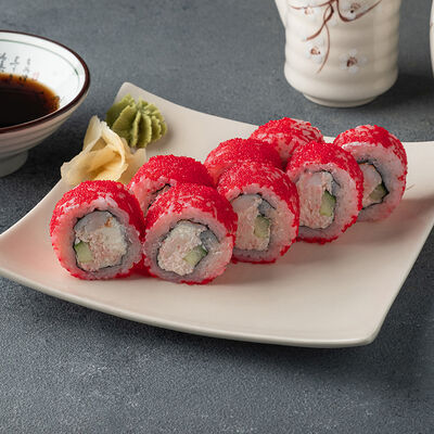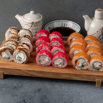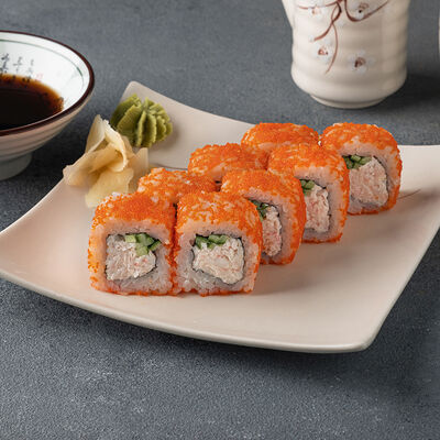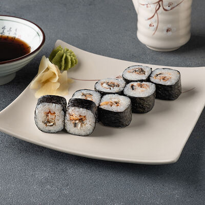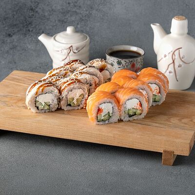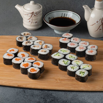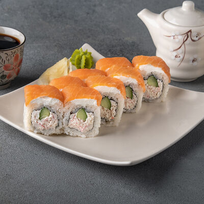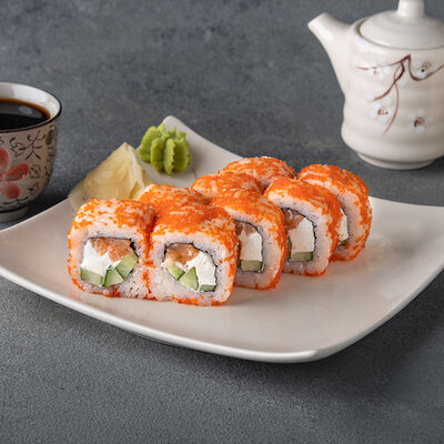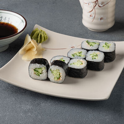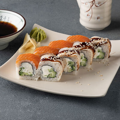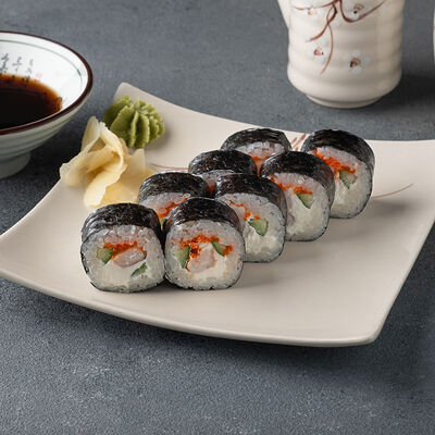 Мини ролл с огурцом, лососем, угрем, креветкой