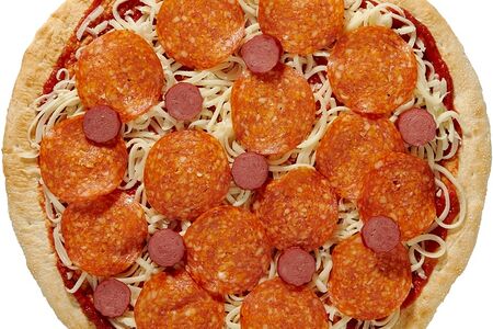 Сведения о составе: Тесто (мука пшеничная хлебопекарная высшего сорта, вода питьевая, масло подсолнечное рафинированное дезодорированное, соль пищевая, сахар, дрожжи хлебопекарные, манная крупа), соус томатный (томаты, сахар, соль пищевая, масло подсолнечное рафинированное дезодорированное, регулятор кислотности лимонная кислота) ,сыр Моцарелла (молоко нормализованное, уплотнитель – хлорид кальция, бактериальная закваска термофильных и мезофильных микроорганизмов, молокосвертывающий фермент микробного происхождения, соль пищевая), Колбаса с/к "Пепперони" (свинина, говядина, шпик, соевый белок, нитритно-посолочная смесь (соль пищевая, фиксатор окраски(нитрит натрия)), специи и экстракты специй, экстракт паприки, растительные волокна (пшеничные, цитрусовые волокна), усилитель вкуса и аромата (глутамат натрия), антиокислитель (изоаскорбат натрия, аскорбиновая кислота), декстроза, мальтодекстрин, ароматизатор, растительное масло. краситель (красный рисовый), стартовые культурыПищевая ценность: 263,7.6,12.7,29.6Условия хранения: 6,2Срок годности в днях: 21Страна изготовления: РоссияСведения об упаковке: Картонная коробкаПроизводитель: Натуральные продукты