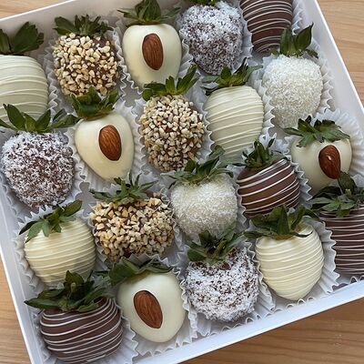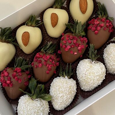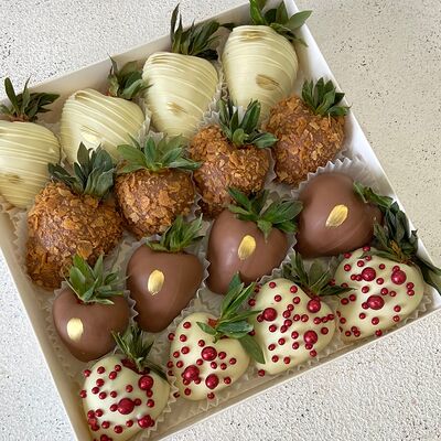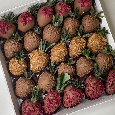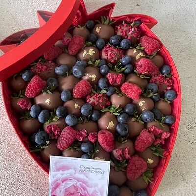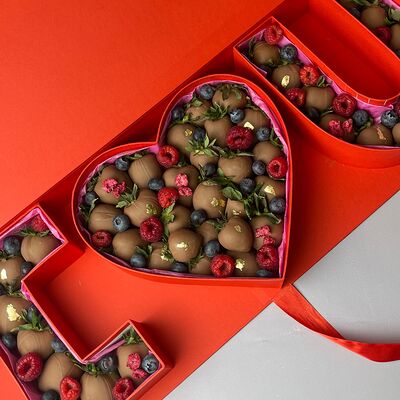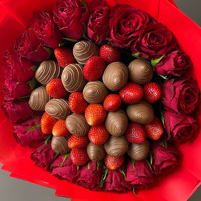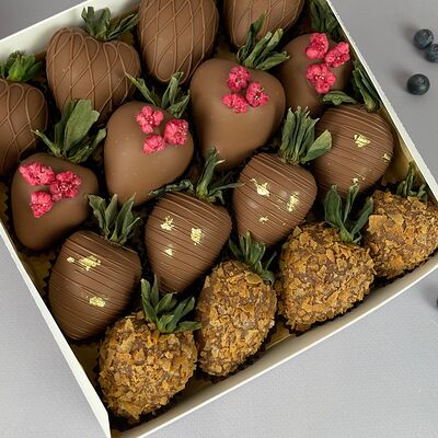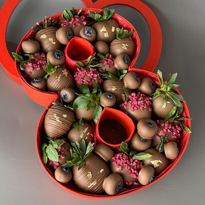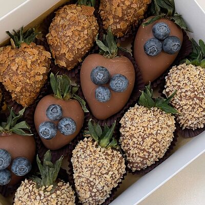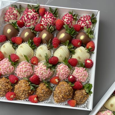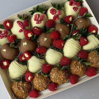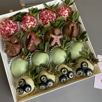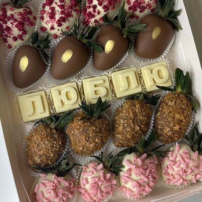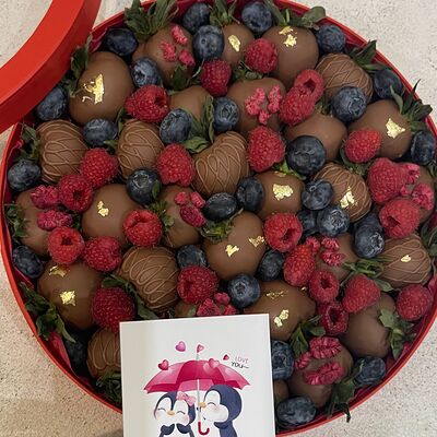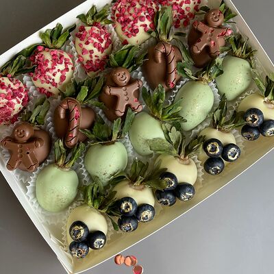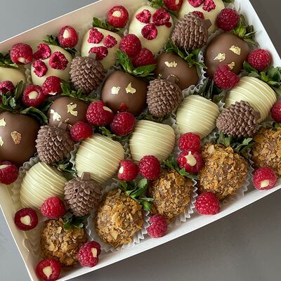 Идеальный подарок из свежих ягод клубники с добавлением непревзойденного бельгийского шоколада Barry Callebaut. Подойдёт как подарок на День Рождения, на Новый год, Рождество, на свидание, на рождение, на юбилей, в качестве извинений или просто так. Вкусный набор удивит получателя и доставит не только эстетическое, но и гастрономическое удовольствие. Каждый подарок бережно упаковываем в красивый подарочный пакет. Гарантируем высокое качество продукции. Am. Ambuket - это кондитеры - профессионалы своего дела. Уже более трёх лет мы создаём удивительные ягодные шедевры высокого качества. Рекомендуем употребить продукцию, содержащую свежие ягоды, в течение первых 12 часов после покупки и хранить при температуре 15-20 градусов