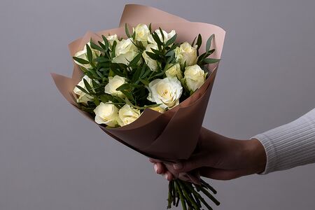 Букет цветов "Розы Промо белые с фисташкой", 15 стеблей. Простоцветы доставка