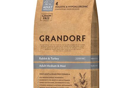 Корм GRANDORF для собак сухой Rabbit&Turkey Adult Med&Maxi Кролик с индейкой для средних и крупных пород доставка
