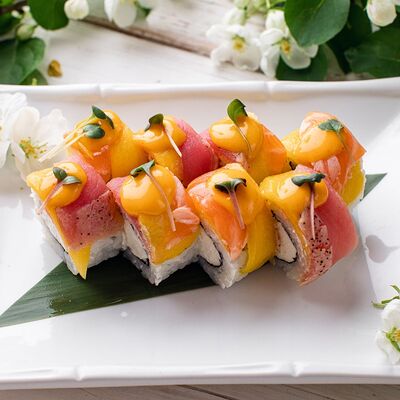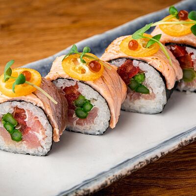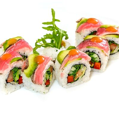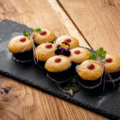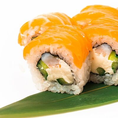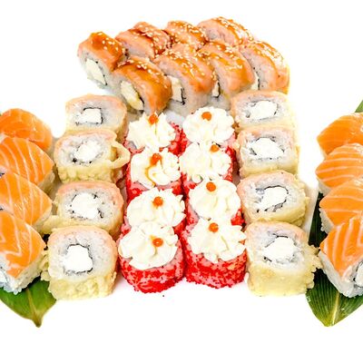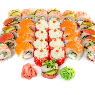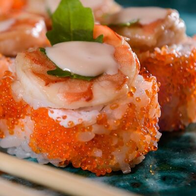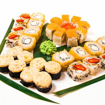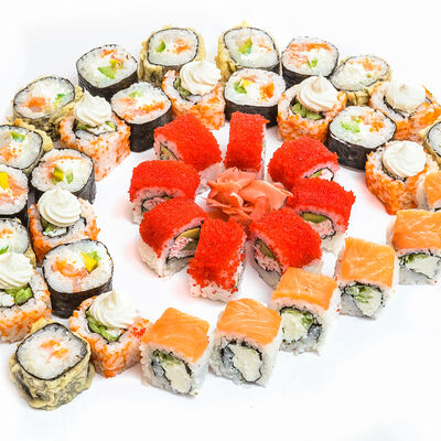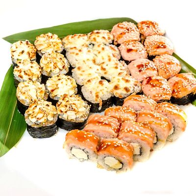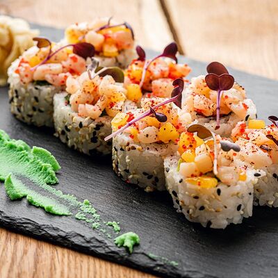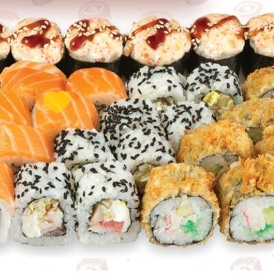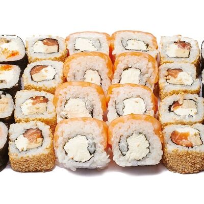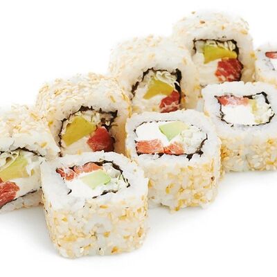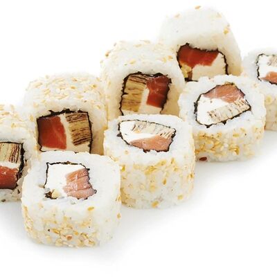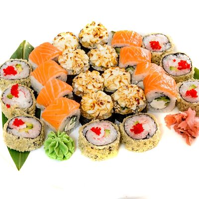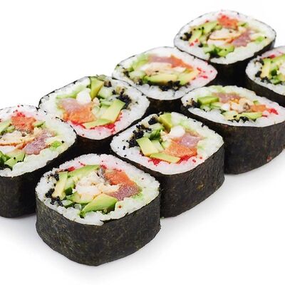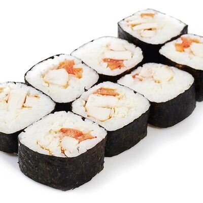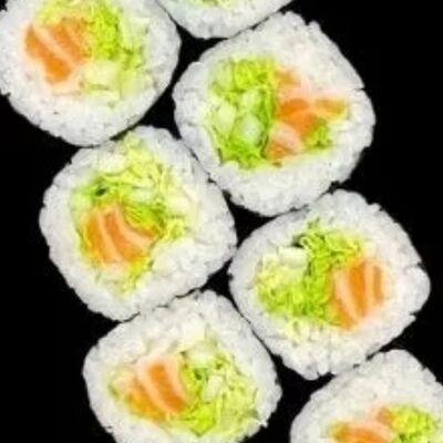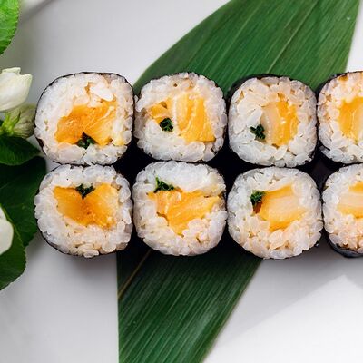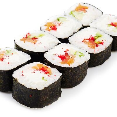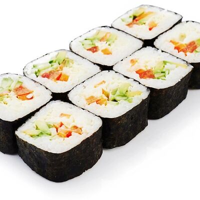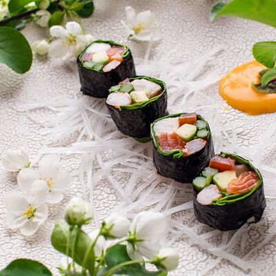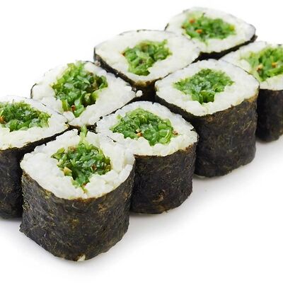 Рис, нори, салат чукка, кунжут. С ореховым соусом