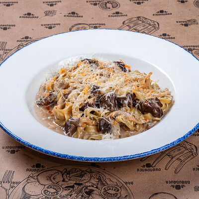 Тальетелли с томлеными щечками в сливочном соусе доставка