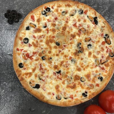 Красный соус, помидоры, моцарелла, тесто (33 см)