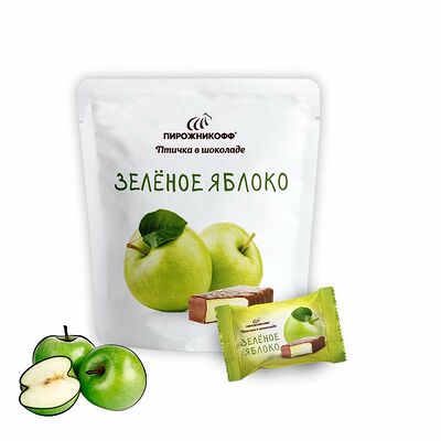 Сахар белый, патока крахмальная, вода питьевая, пюре яблочное, желеобразователь - пектин, влагоудерживающий агент - цитрат натрия, антиокислитель - лимонная кислота, белок яичный сухой, краситель хлорофилл, ароматизатор натуральный - фисташка