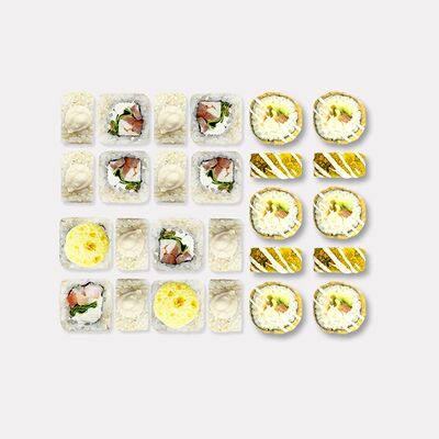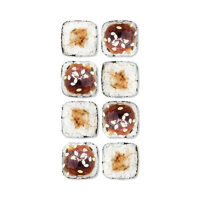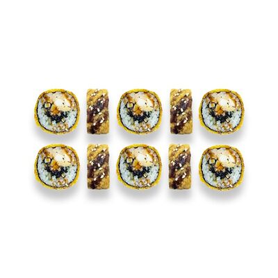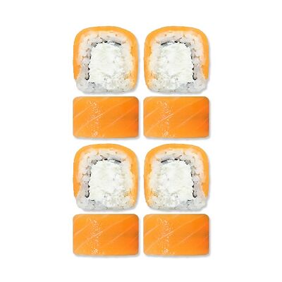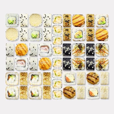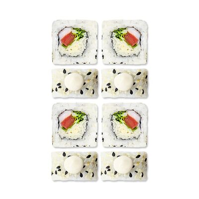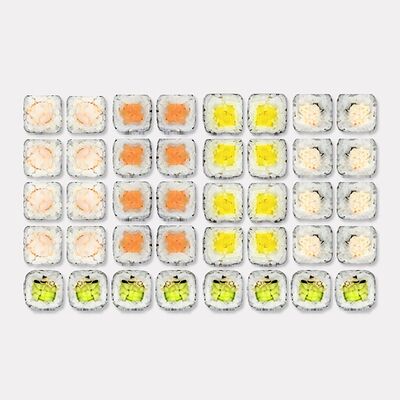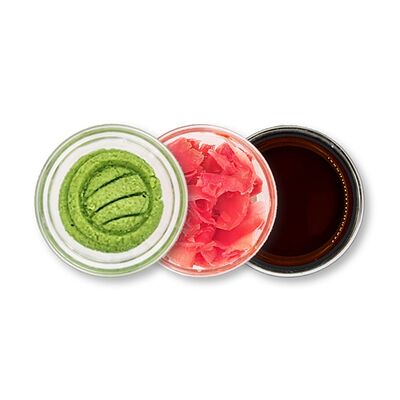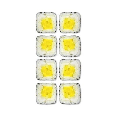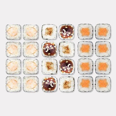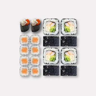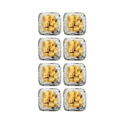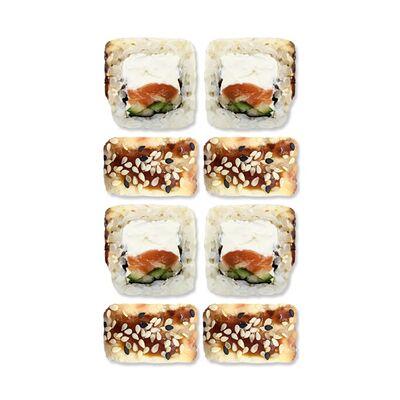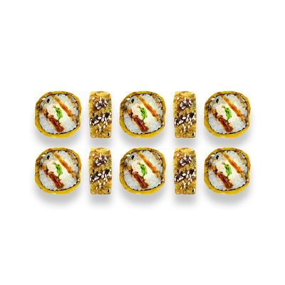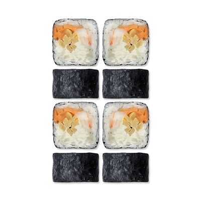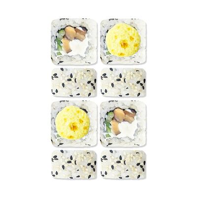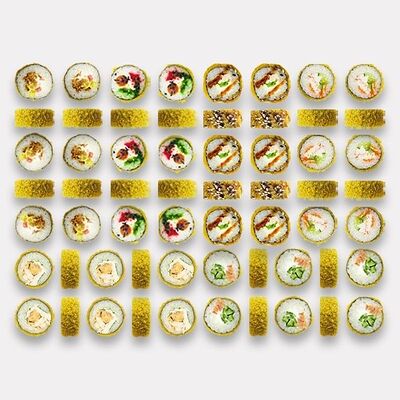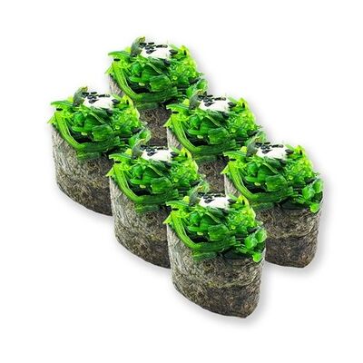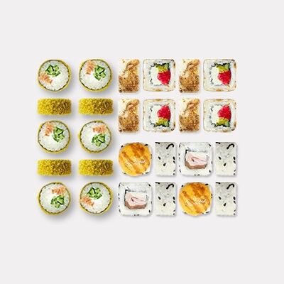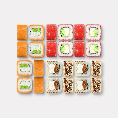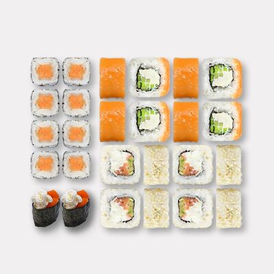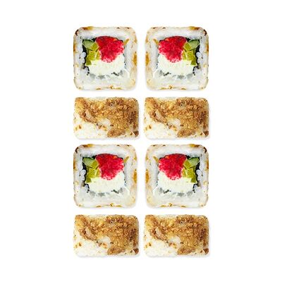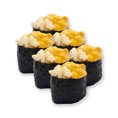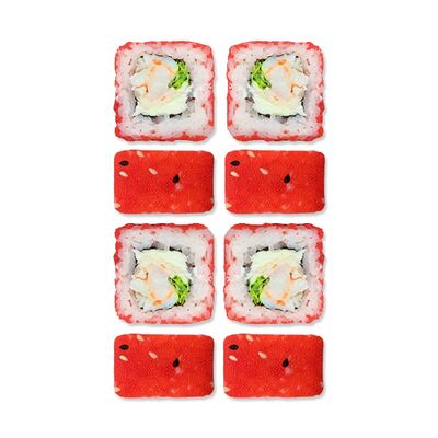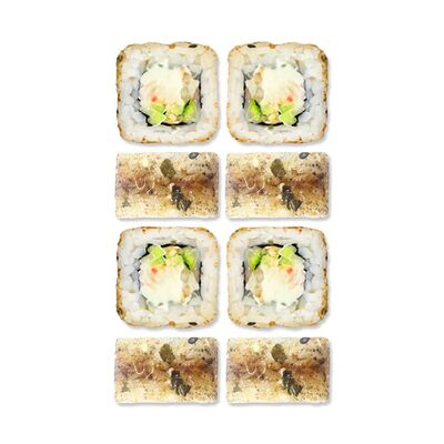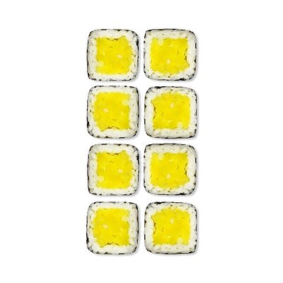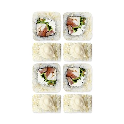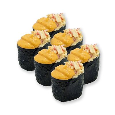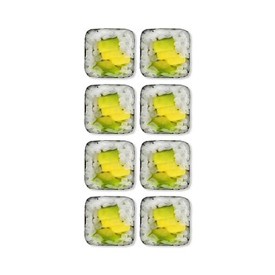 Рис, нори, маринованные грибы шиитаке (собственного производства), огурец, сыр творожный, блин томаго. Если вы заказываете роллы отдельно, добавьте необходимое количество имбиря, васаби и соевого соуса из раздела специи