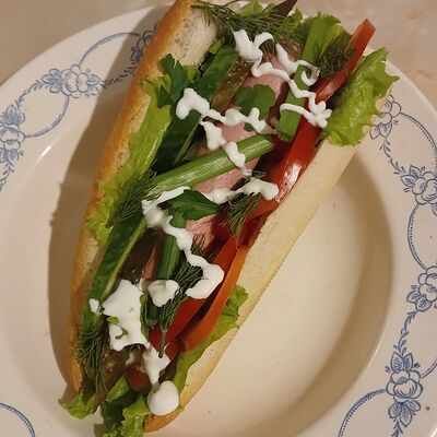 Курение или говяжья колбаски (на выбор), горчица, кетчуп, сыр, маринованные огурцы, лук, капуста, свежие помидоры. Соусы - тоже немаловажный ингредиент, ведь от них во многом зависит вкус сосиски в булочке