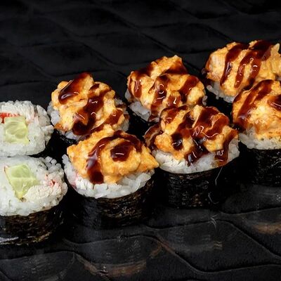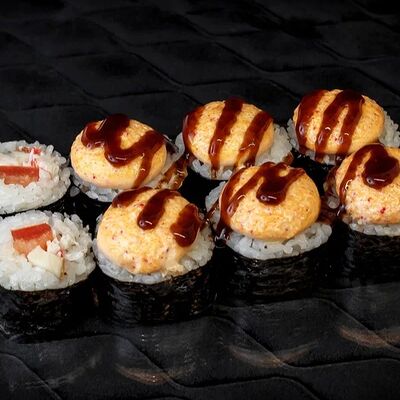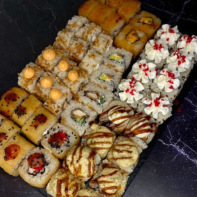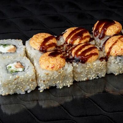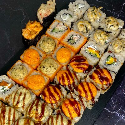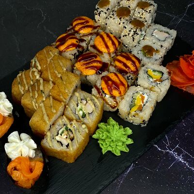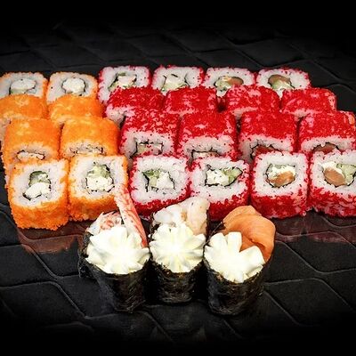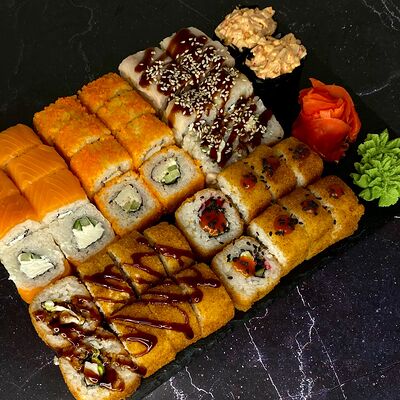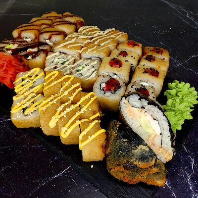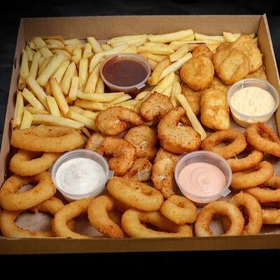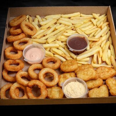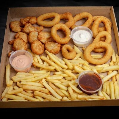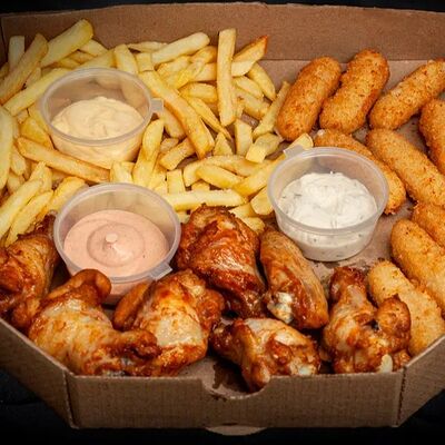 Картофель фри, куриные крылышки Баффало (7 шт.), сырные палочки из моцареллы (9 шт.), соусы на выбор