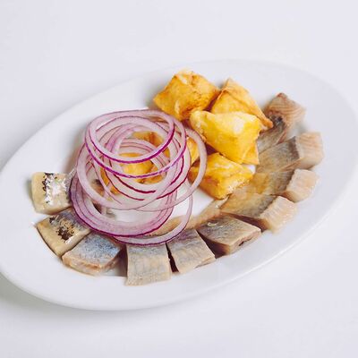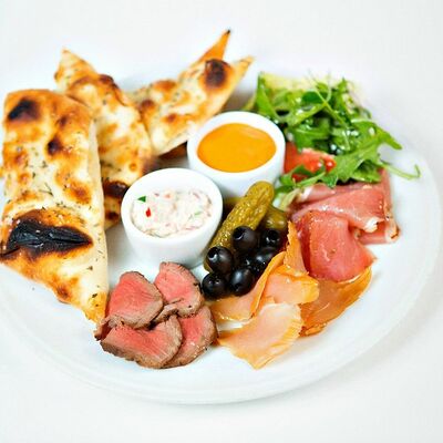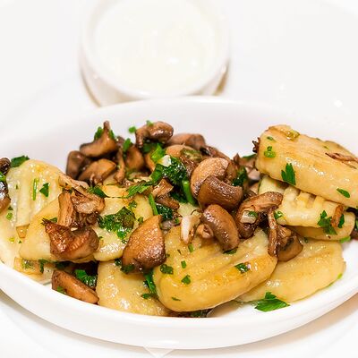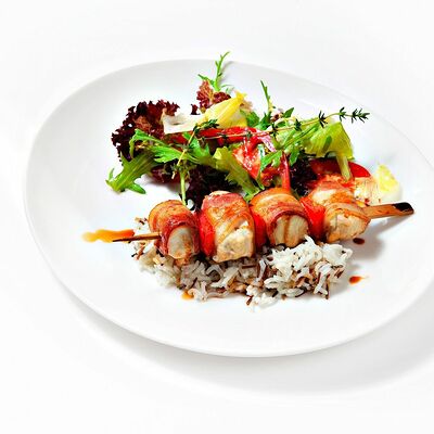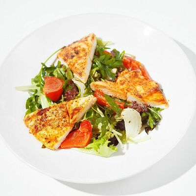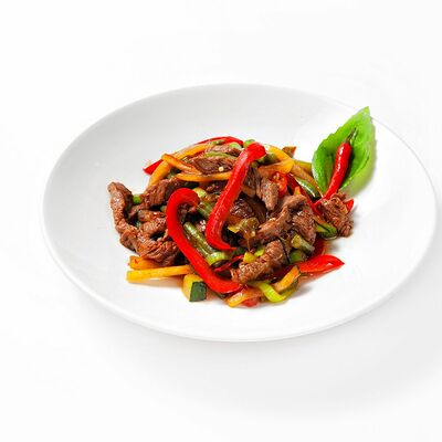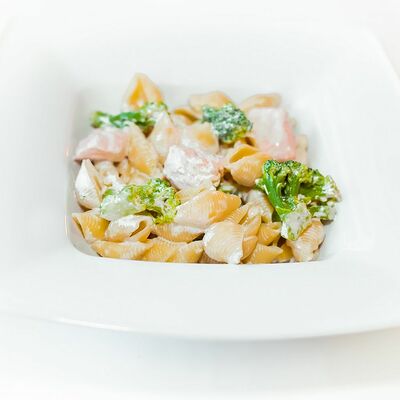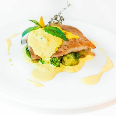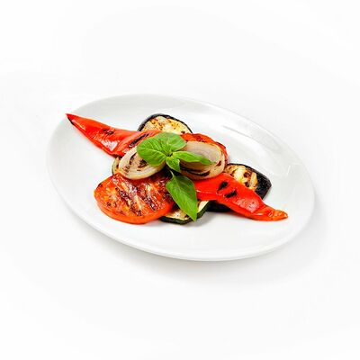 Приготовленного на гриле, с гарниром из овощей в сливочном соусе