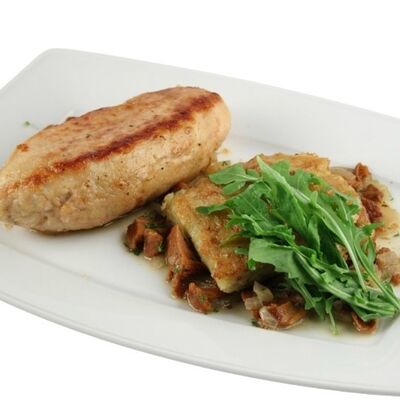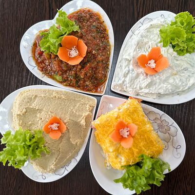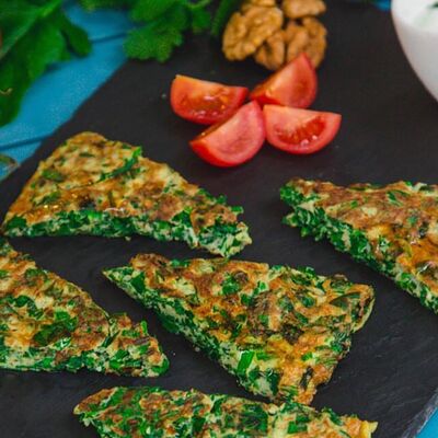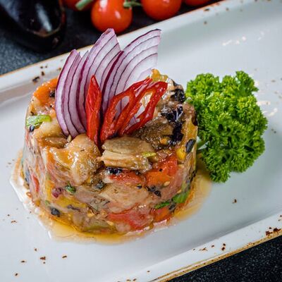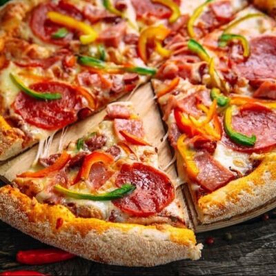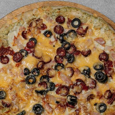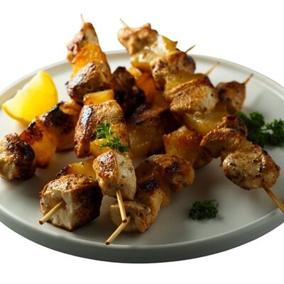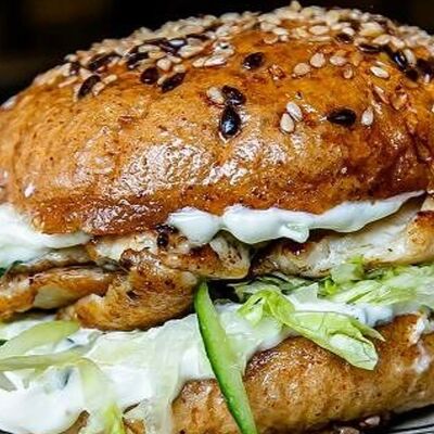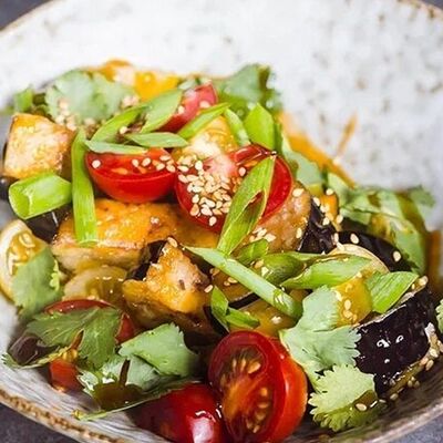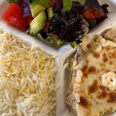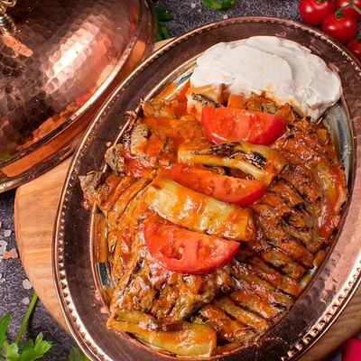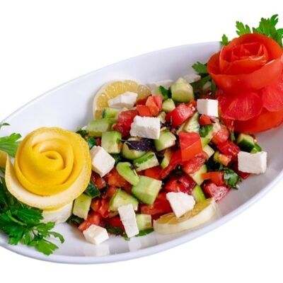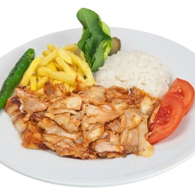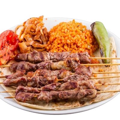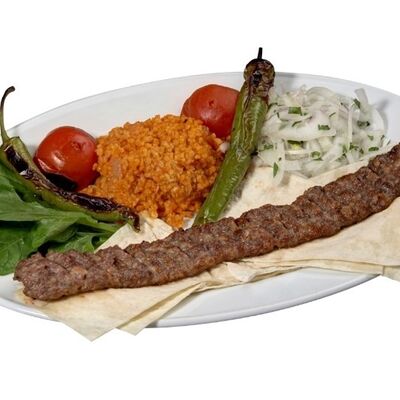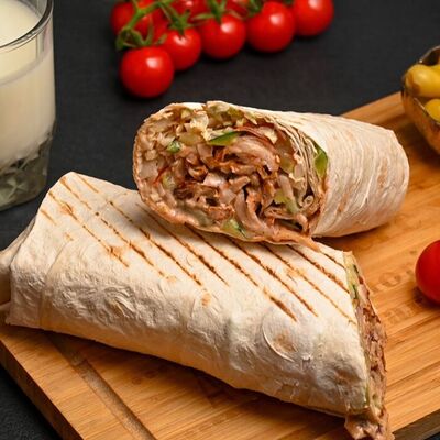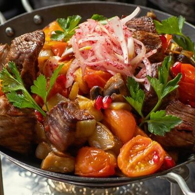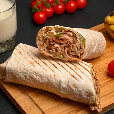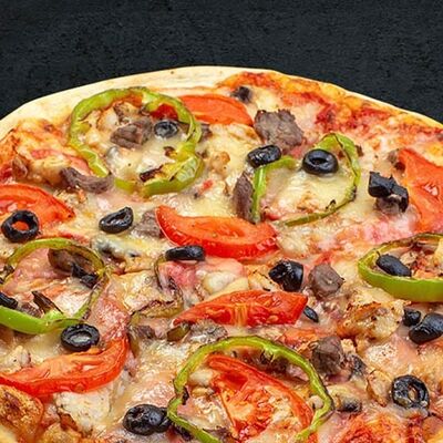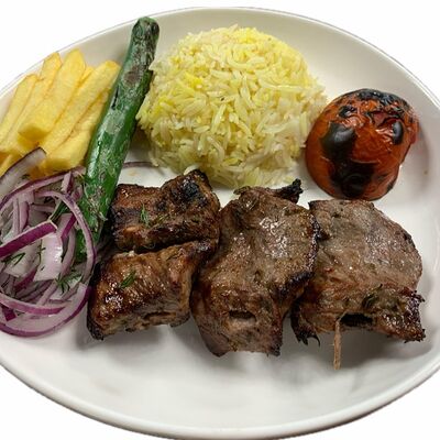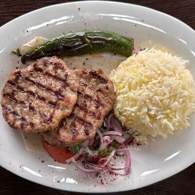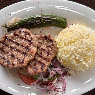 Курица, пиде, помидоры, картофель фри, сумах, лук, перец на гриле