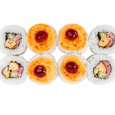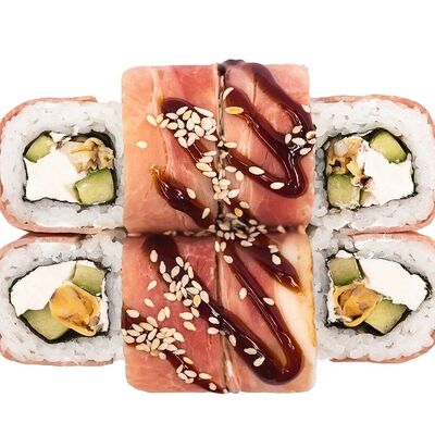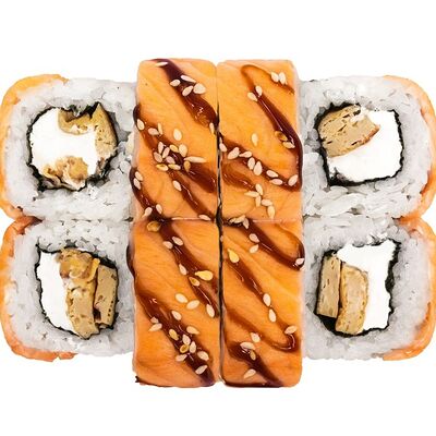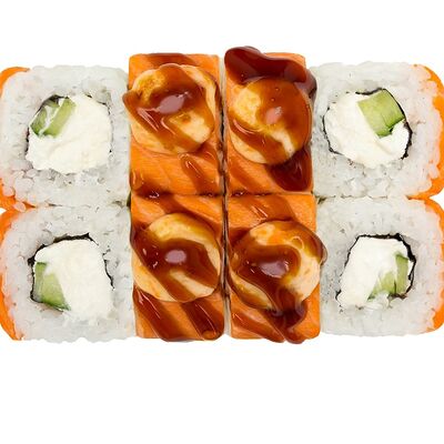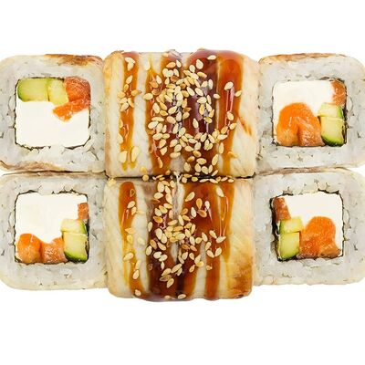 Лосось, сливочный сыр, огурец, соус яки (8 шт.)