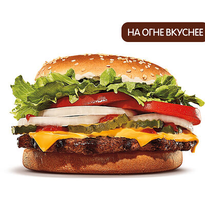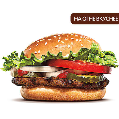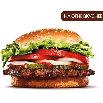 ВОППЕР® — это вкуснейшая приготовленная на огне 100% говядина с сочными помидорами, свежим нарезанным листовым салатом, густым майонезом, хрустящими маринованными огурчиками и свежим луком на нежной булочке с кунжутом.