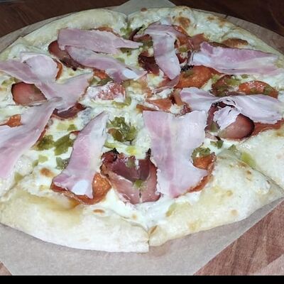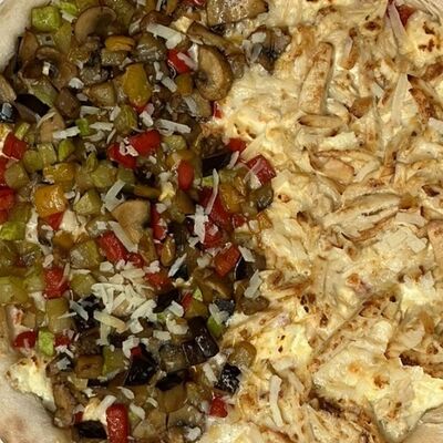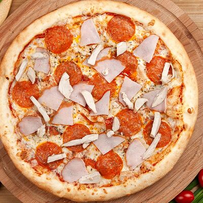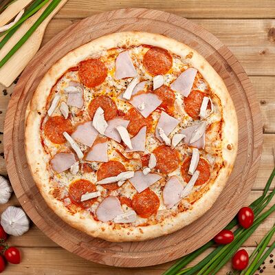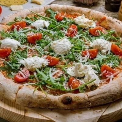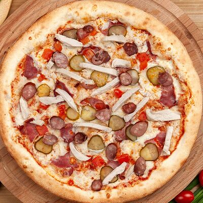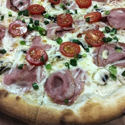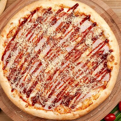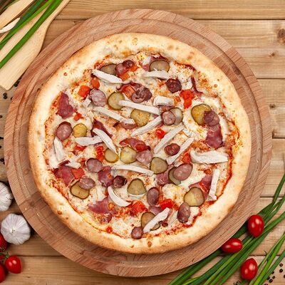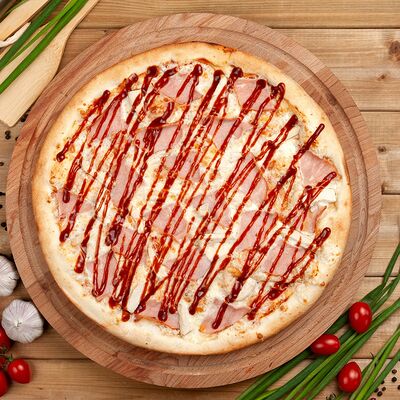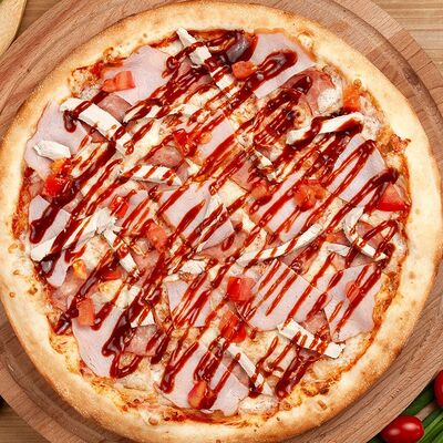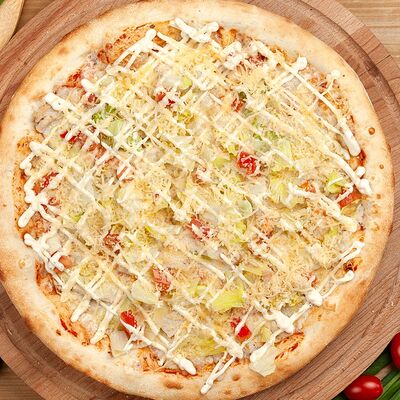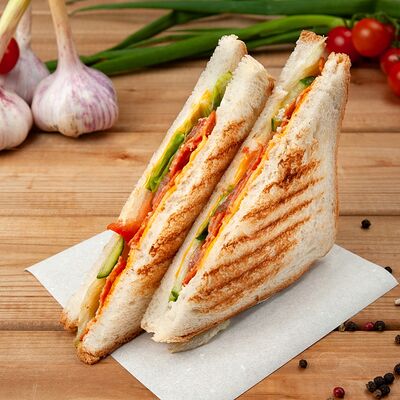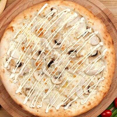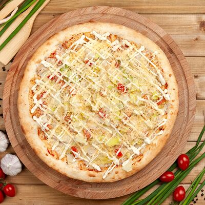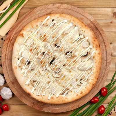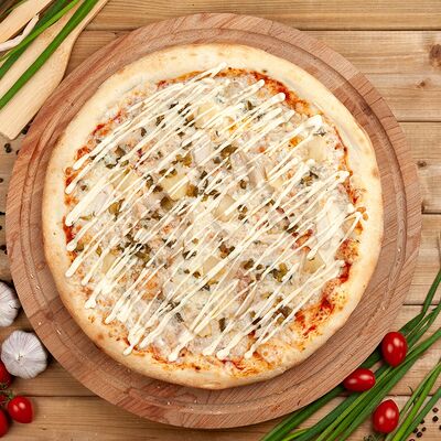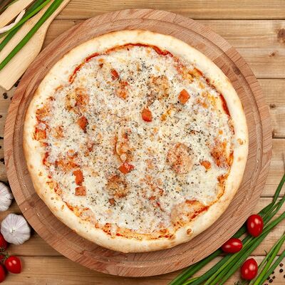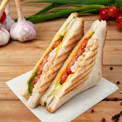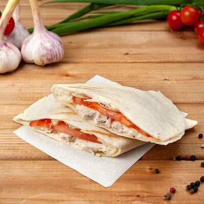 Тортилья сырная, моцарелла, чесночный соус, куриное филе, помидоры