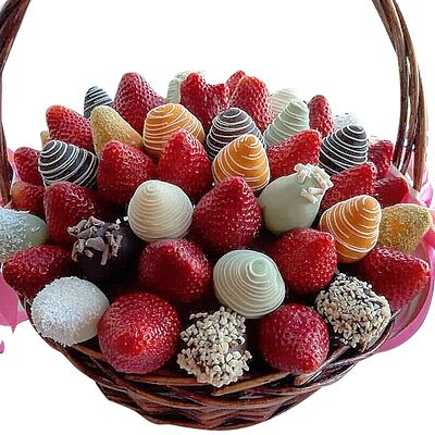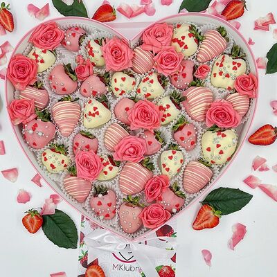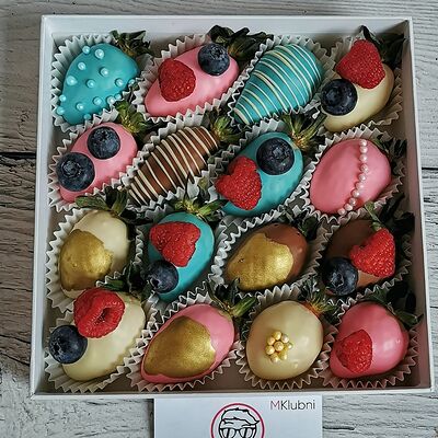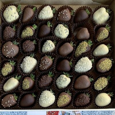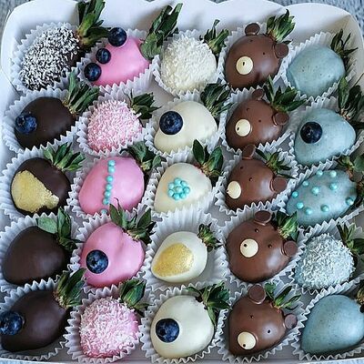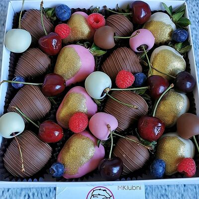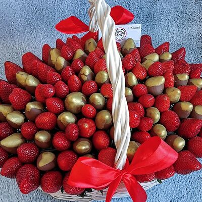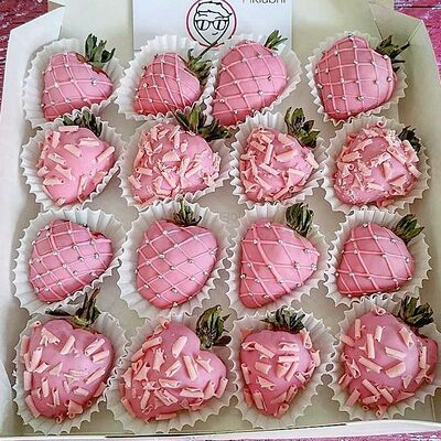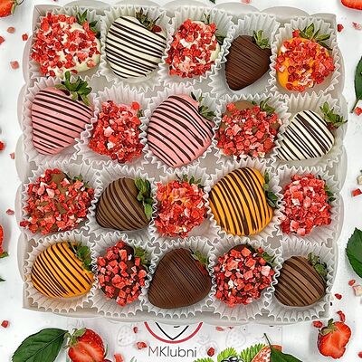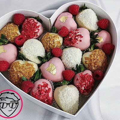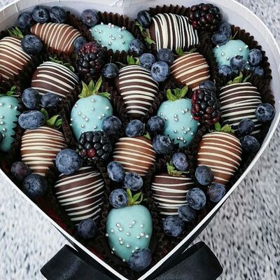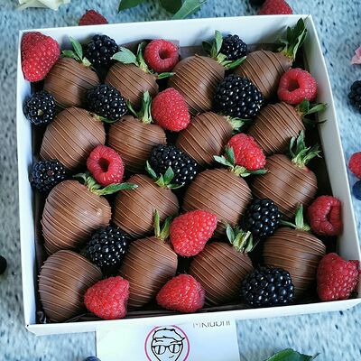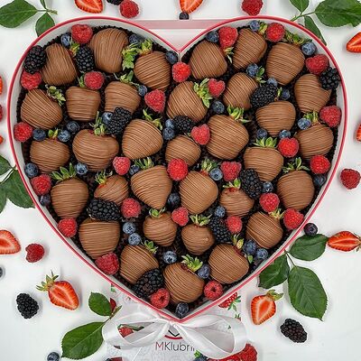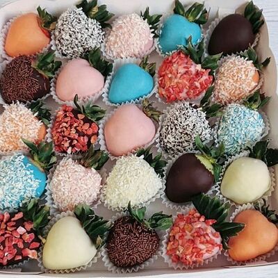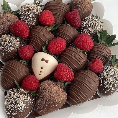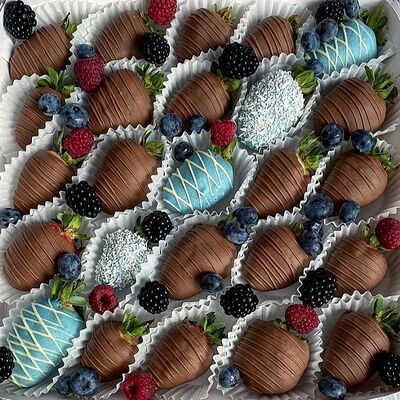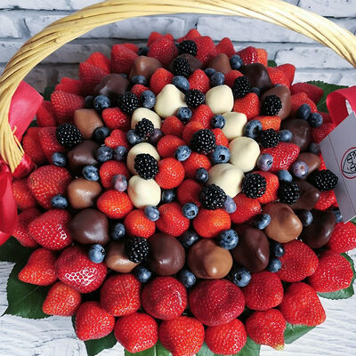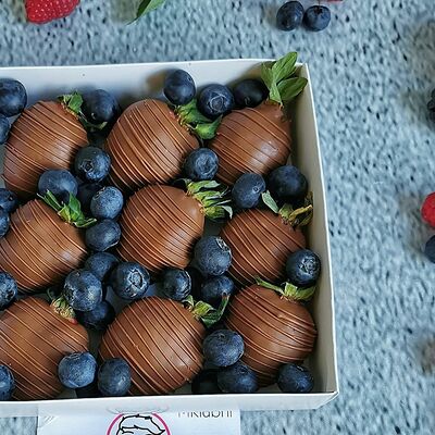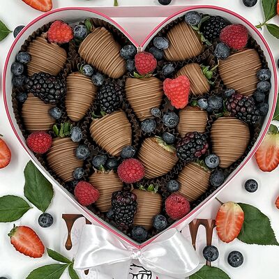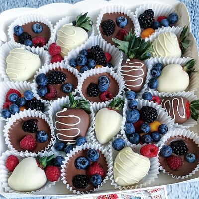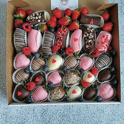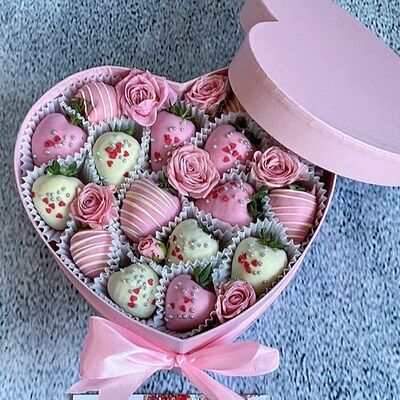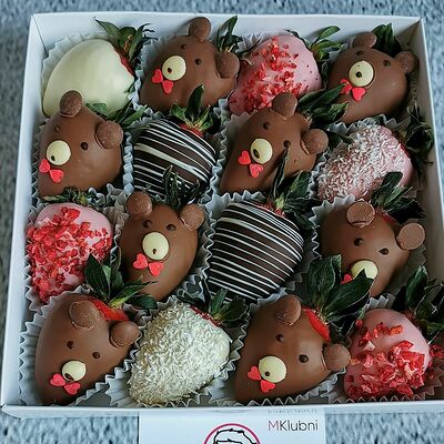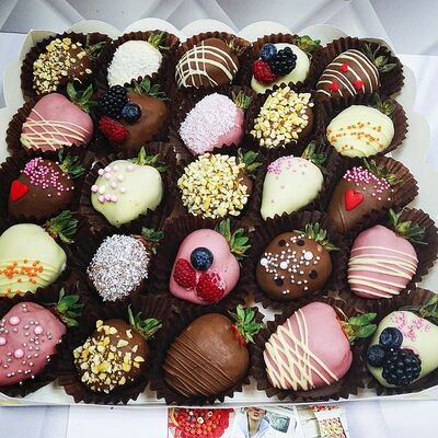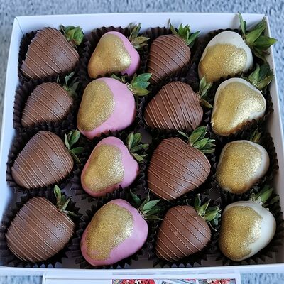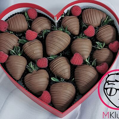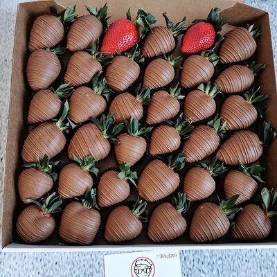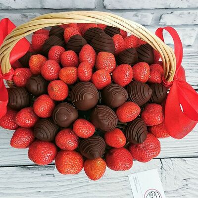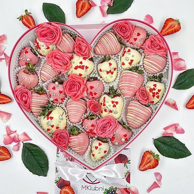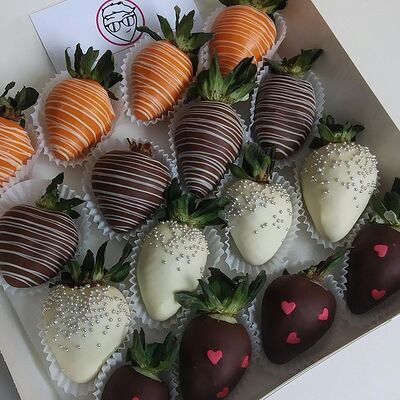 Отборная спелая клубника в натуральном бельгийском шоколаде (16-25 шт.; зависит от размера клубники) подарочная коробка (20х20х4 см) с прозрачной крышкой и бантиком, подарочный пакет