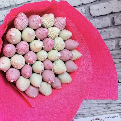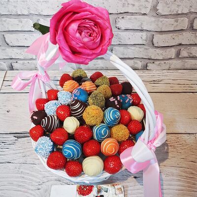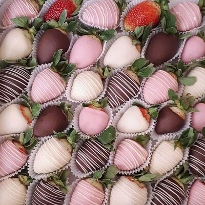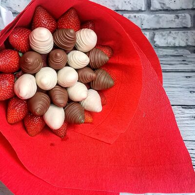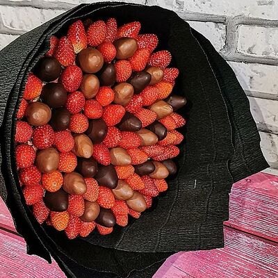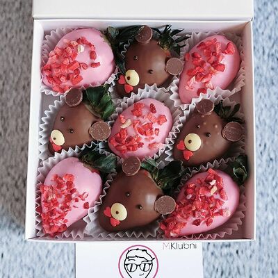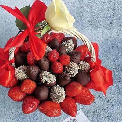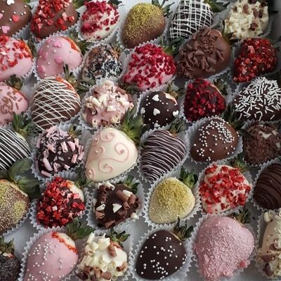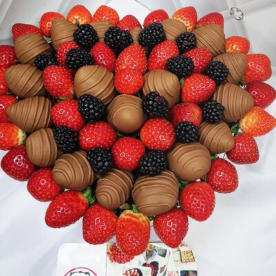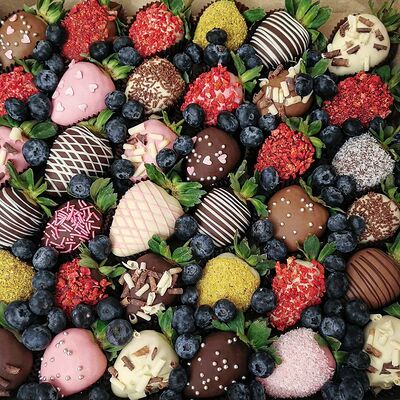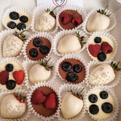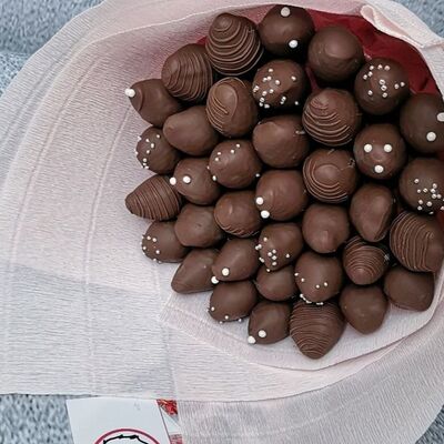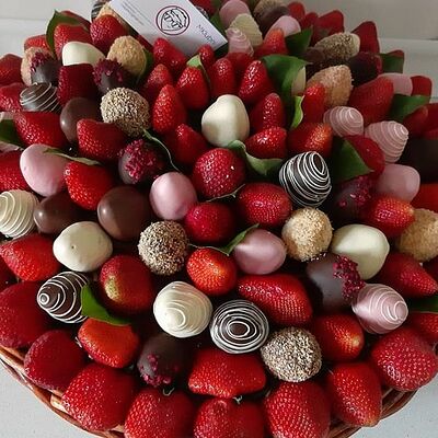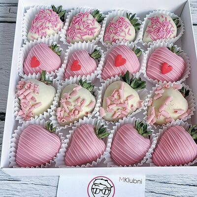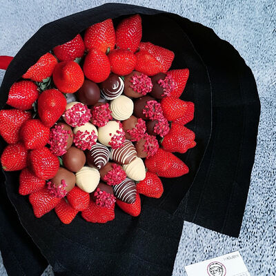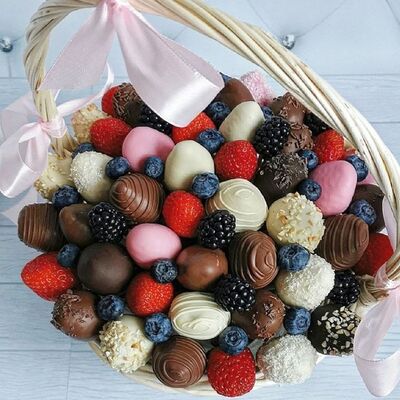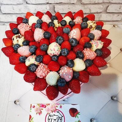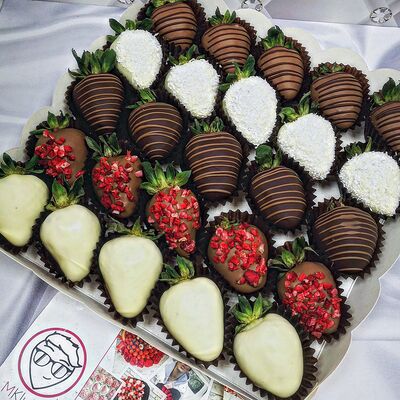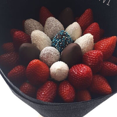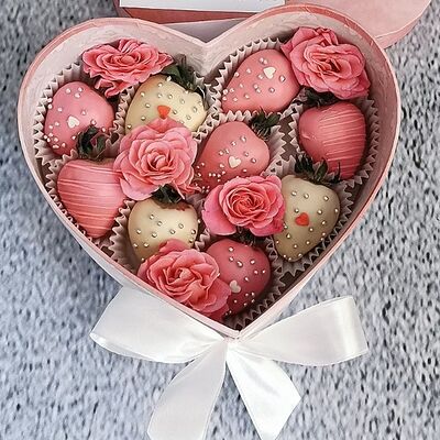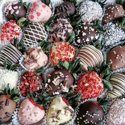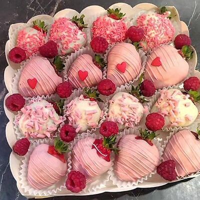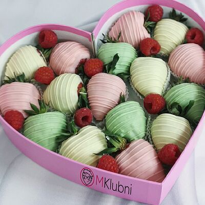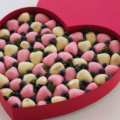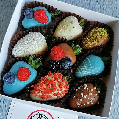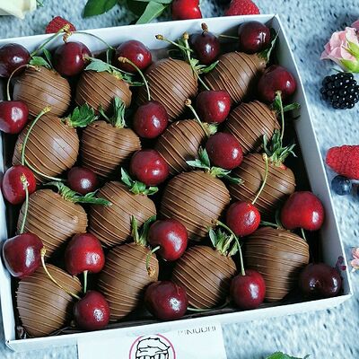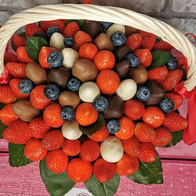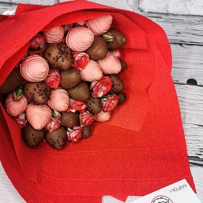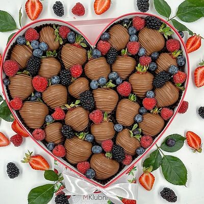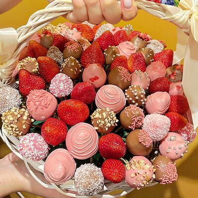 Отборная спелая клубника в натуральном бельгийском шоколаде (16-25 шт.; зависит от размера клубники) подарочная коробка (20х20х4 см) с прозрачной крышкой и бантиком, подарочный пакет