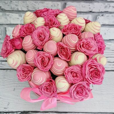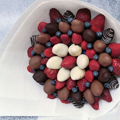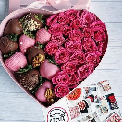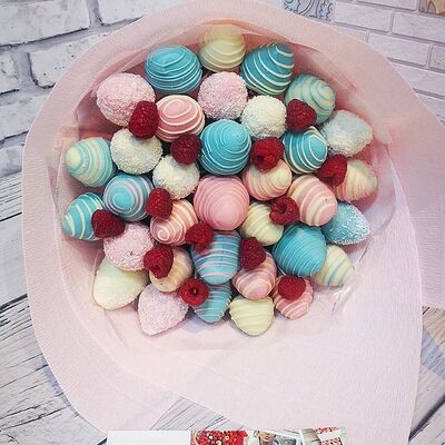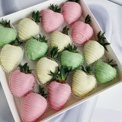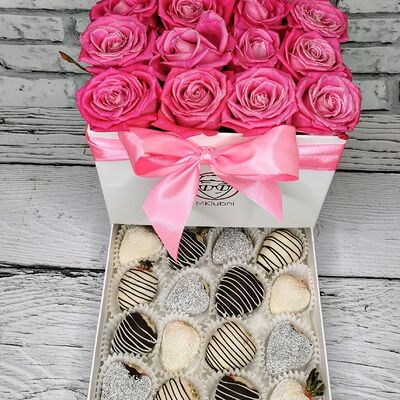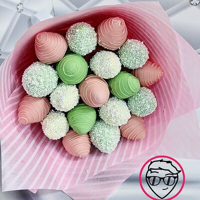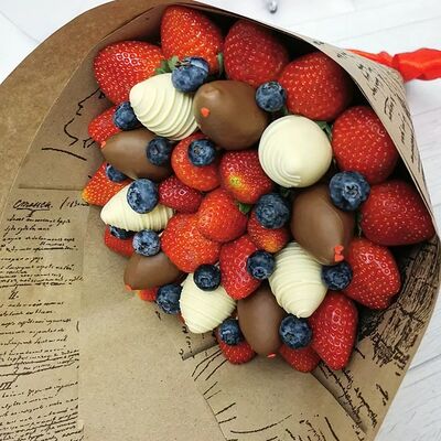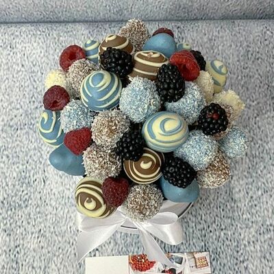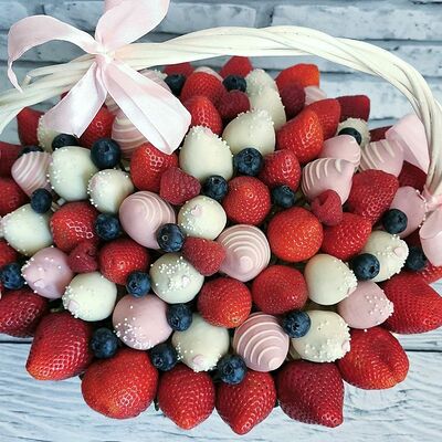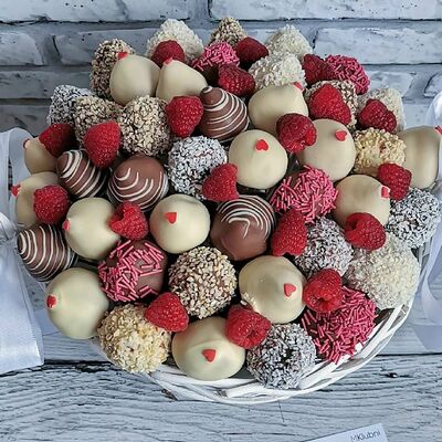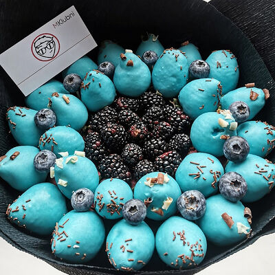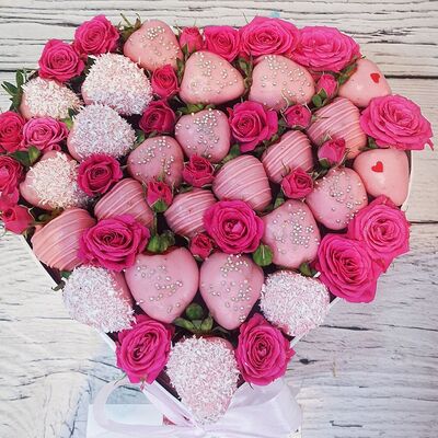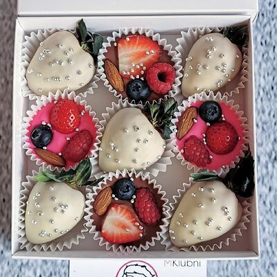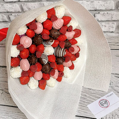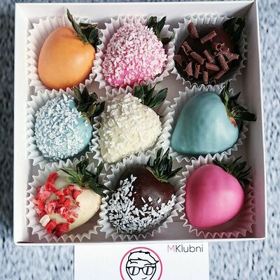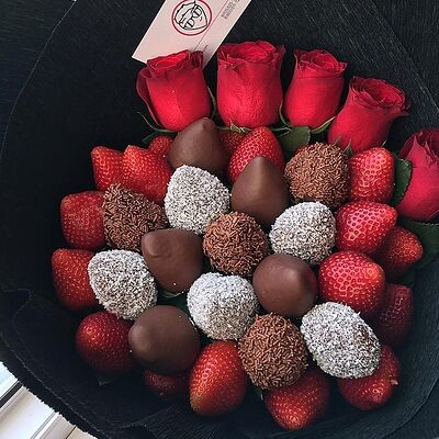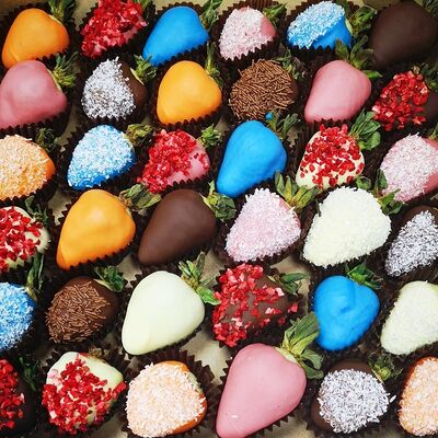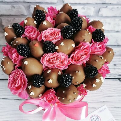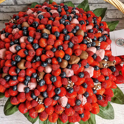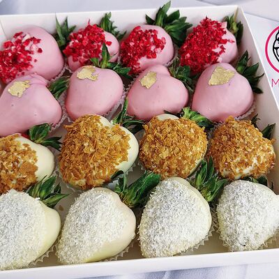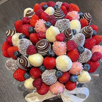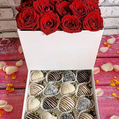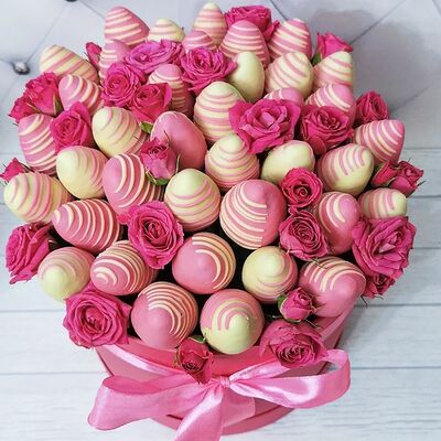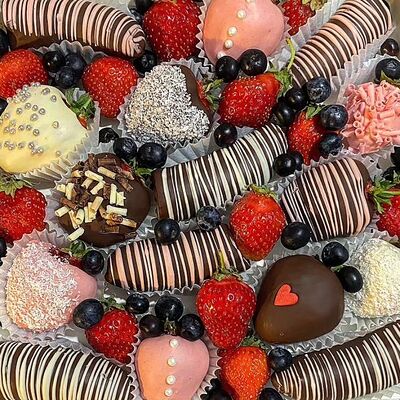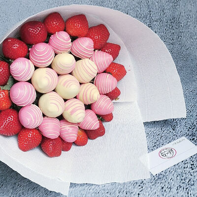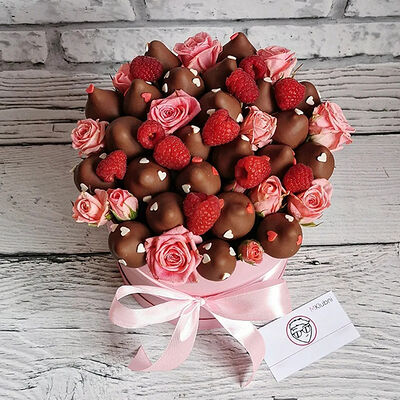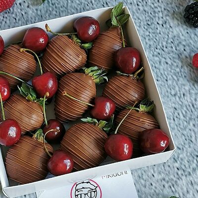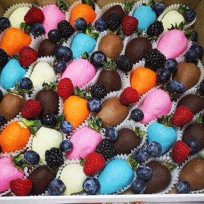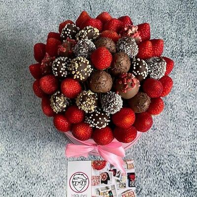 Отборная спелая клубника в натуральном бельгийском шоколаде (16-25 шт.; зависит от размера клубники) подарочная коробка (20х20х4 см) с прозрачной крышкой и бантиком, подарочный пакет
