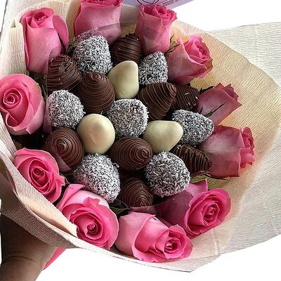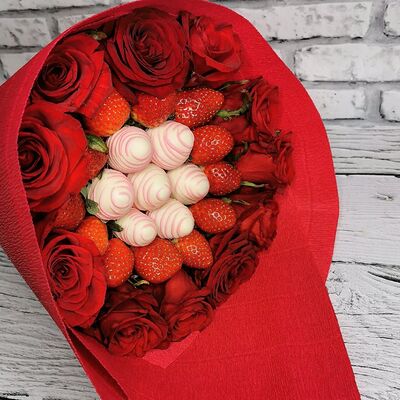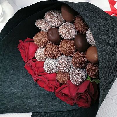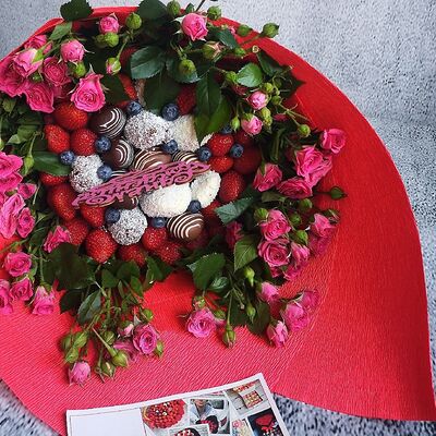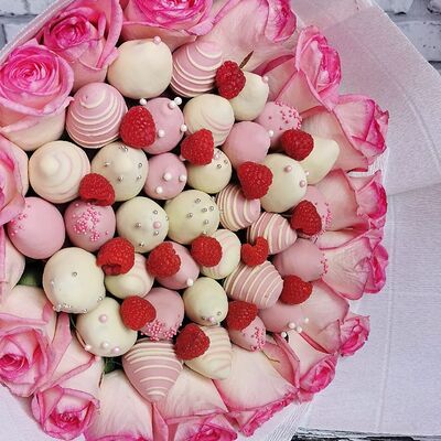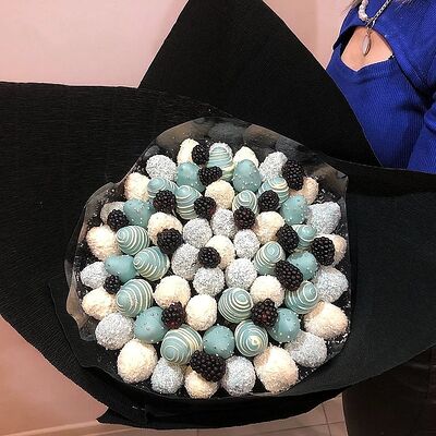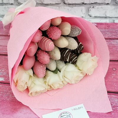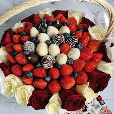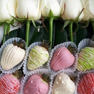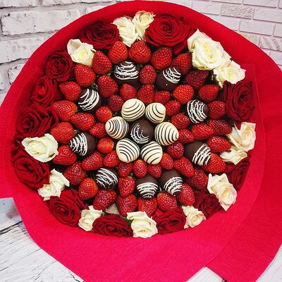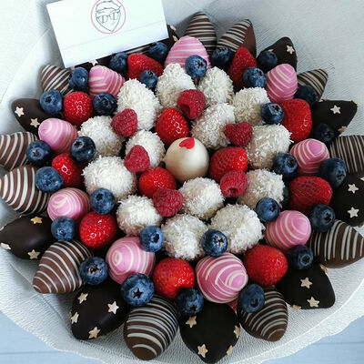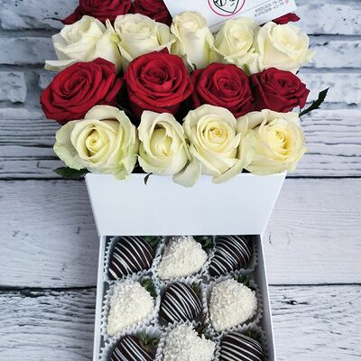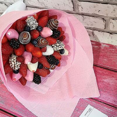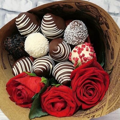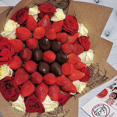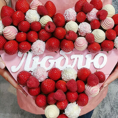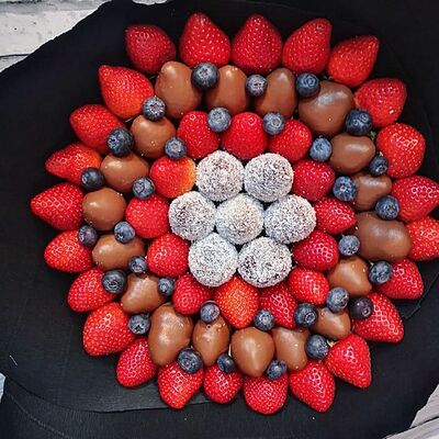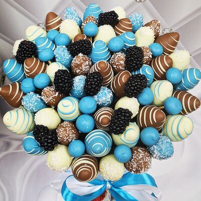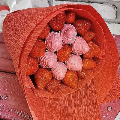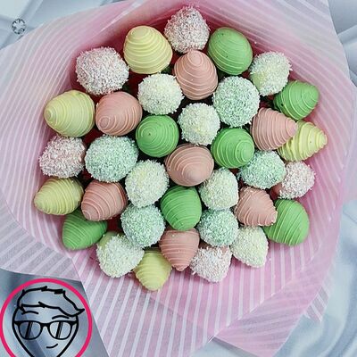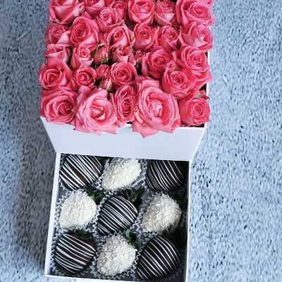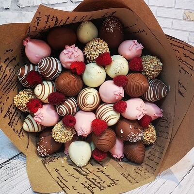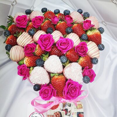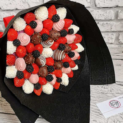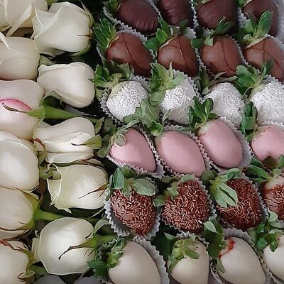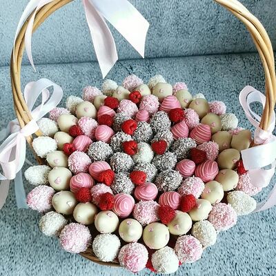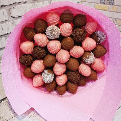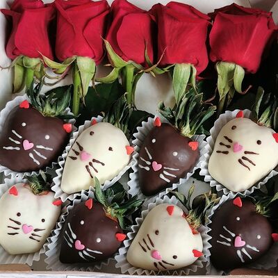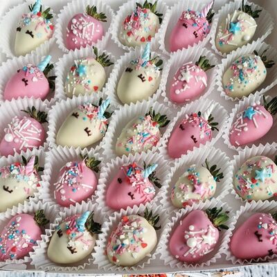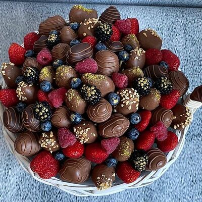 Отборная спелая клубника в натуральном бельгийском шоколаде (16-25 шт.; зависит от размера клубники) подарочная коробка (20х20х4 см) с прозрачной крышкой и бантиком, подарочный пакет