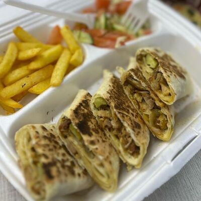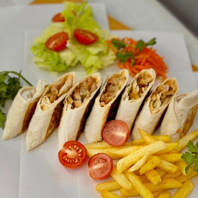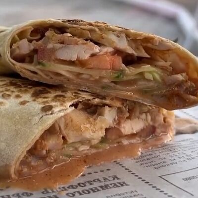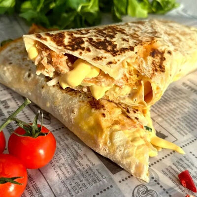 Двойное куриное филе, лаваш, помидор, капуста, огурцы, соусы