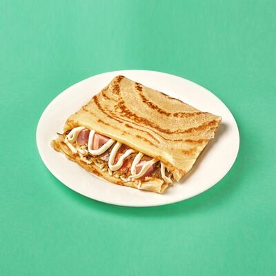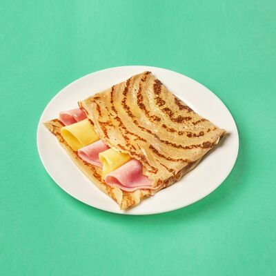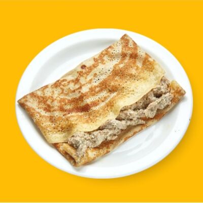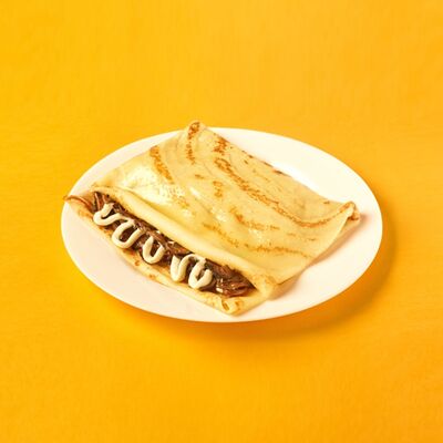 Ароматный блин с начинкой из грибов шампиньонов, куриной грудки копченой, сыр голландский