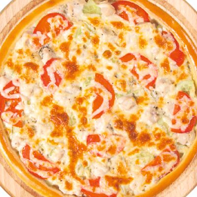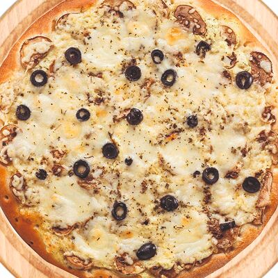 Шампиньоны, сливочный соус, маслины, лук репчатый, перец болгарский, сыр Моцарелла (30 см)