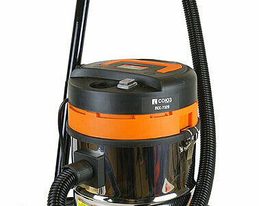 СОЮЗ ПСС-7320 – универсальный строительный пылесос – незаменимый помощник при уборке, как в мастерских, так и в бытовых помещениях, офисах или квартирах. Благодаря наличию вместительного 20 литрового бака из нержавеющей стали пылесос позволяет производить уборку на достаточно больших площадях, без необходимости его частой очистки. Модель оснащена мощным 1600 Вт электромотором, позволяющим добиться высоких показателей по скорости воздушного потока (до 40 м / с) и разрежения на входе – это способствует быстрому и эффективному удалению мусора и пыли. Дополнительную надежность при работе гарантирует встроенная защита двигателя от перегрева. Помимо традиционного режима всасывания, конструкцией предусмотрен режим выдува воздуха ¬– он идеально подходит для экспресс-очистки от мусора рабочих столов и верстаков, а также очистки штроб и т д. Кроме того, устройство может эффективно применяться и для сбора негорючих жидкостей. Пылесос имеет встроенную розетку, позволяющую запитывать от него электроинструмент мощностью до 2000 Вт. Модель комплектуется трехсоставной подающей трубкой, полутораметровым гофрированным шлангом, а также набором насадок, обеспечивающих универсальность применения. Удобству перемещения пылесоса с места на место способствует платформа на 4-х независимых колесах.