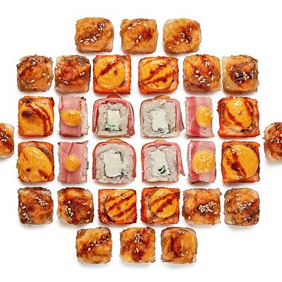 Роллы Филадельфия лайт, Запеченный с лососем, Сливочный краб, Сегун