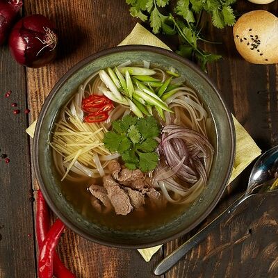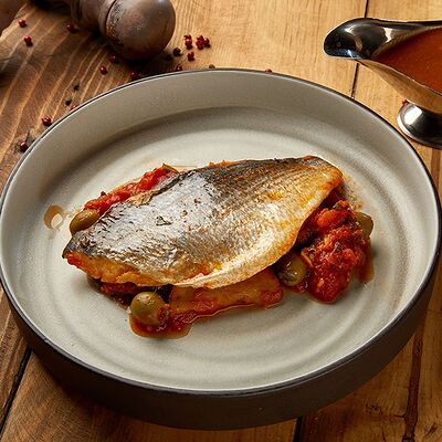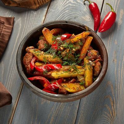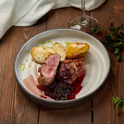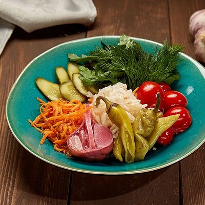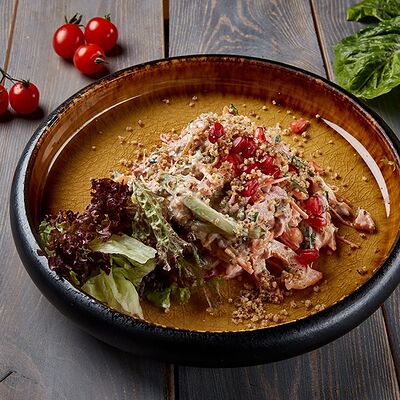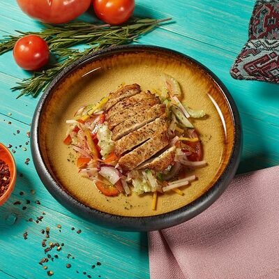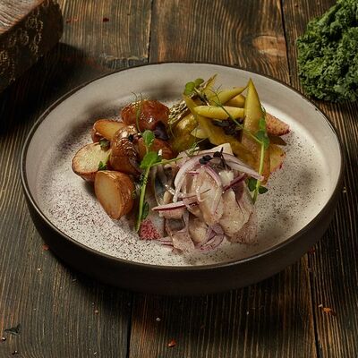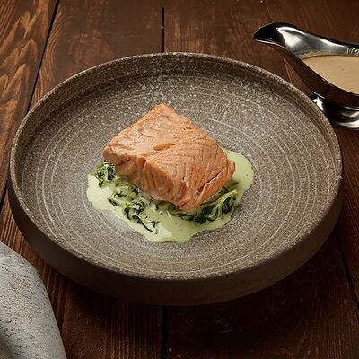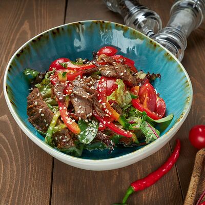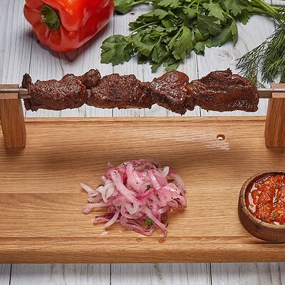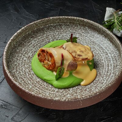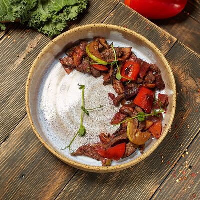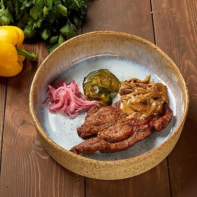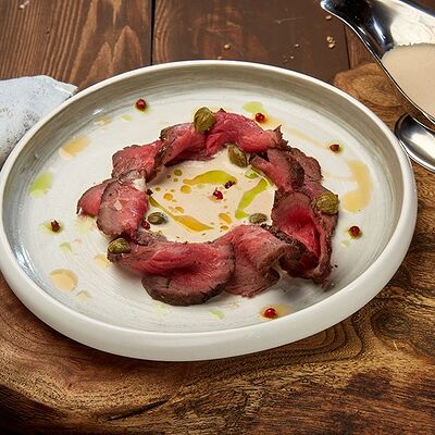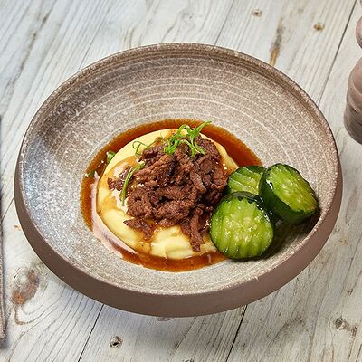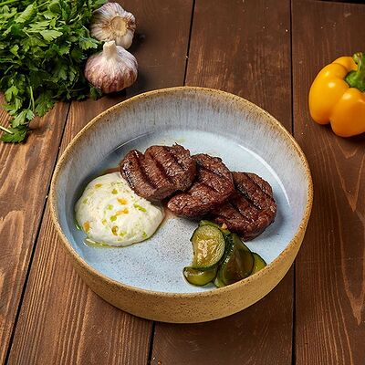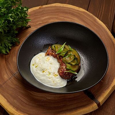 Вырезка говяжья, сливочный мусс, огурцы кимчи