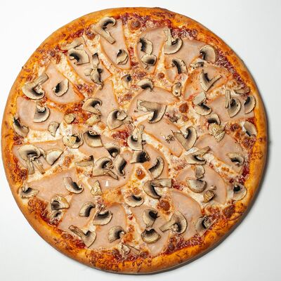 Тонкое тесто, пицца соус, сыр, ветчина куриная (30 см)
