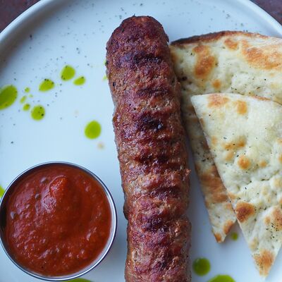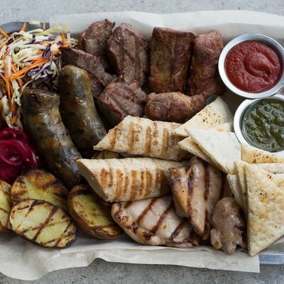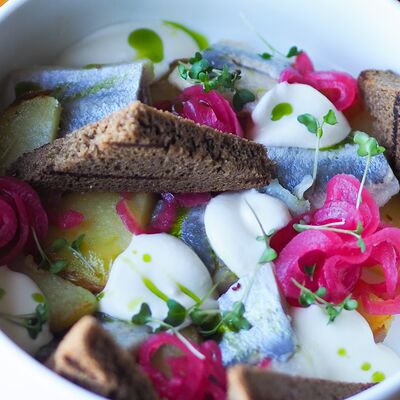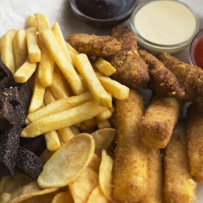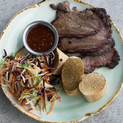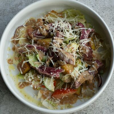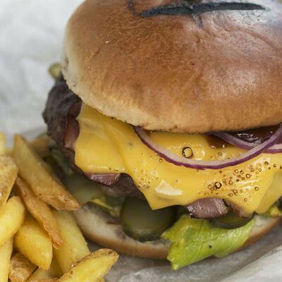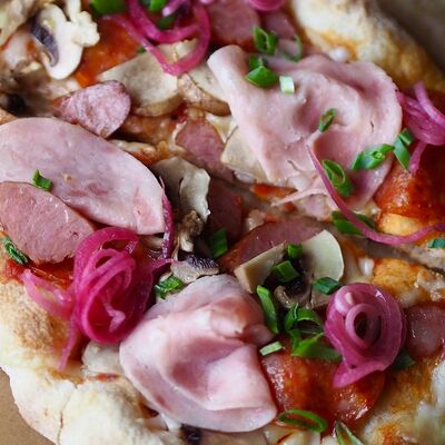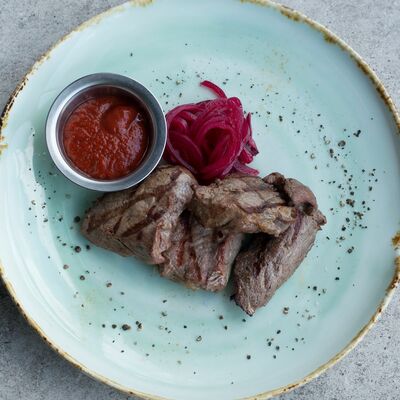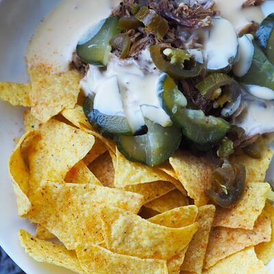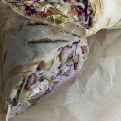 Рваная свинина, чеддер сыр, айсберг салат, солёные огурцы, красный маринованный лук, острый соус и горчичный соус (212 ккал)
