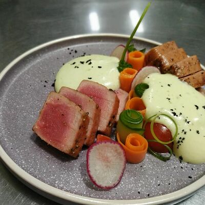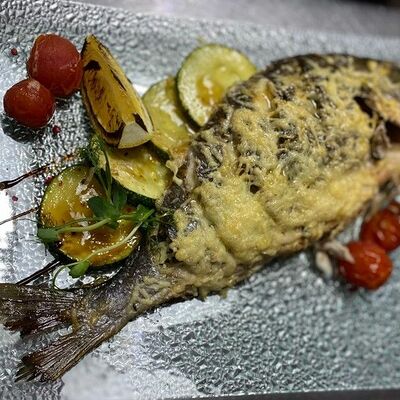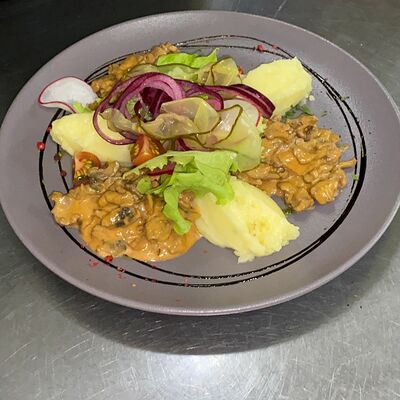 Крем-суп из шампиньонов, белых грибов и сливок. Подается с сухарями