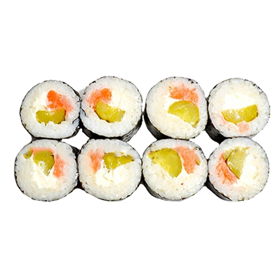 Филе лосося, огурец, тобико, унаги соус, фирменный мусс