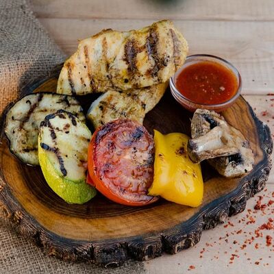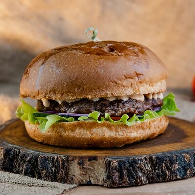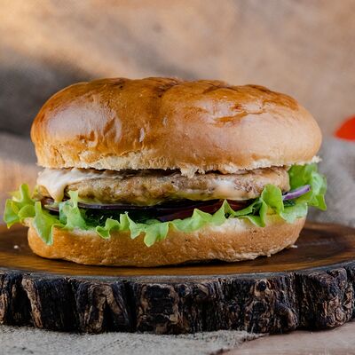 Булочки для бургеров, нежная куриная котлета, лист салата, помидоры, огурцы