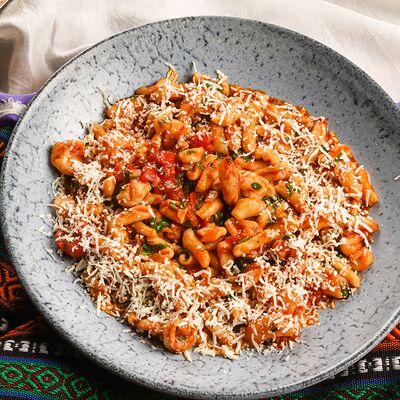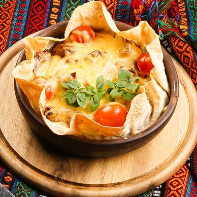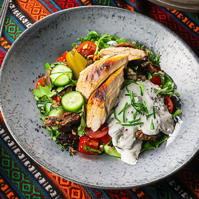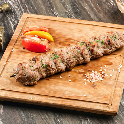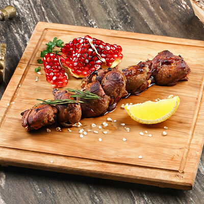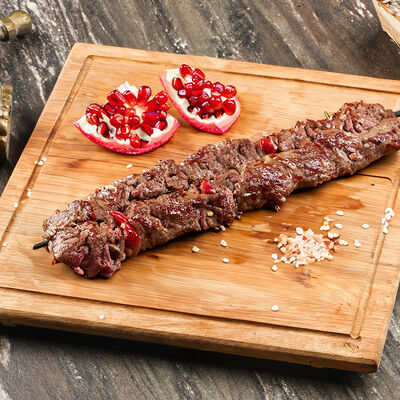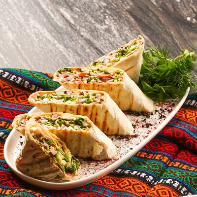 Куриые бедра, лаваш, лук красный, лук репчатый, сумах, гранат, паста томатная, майонез