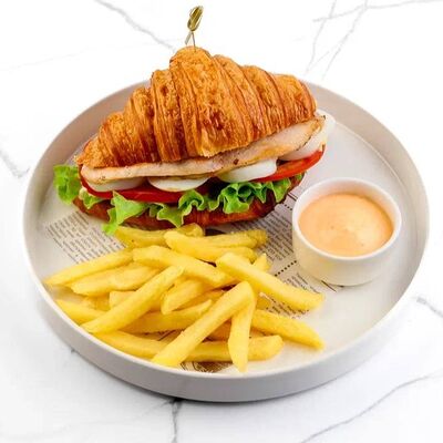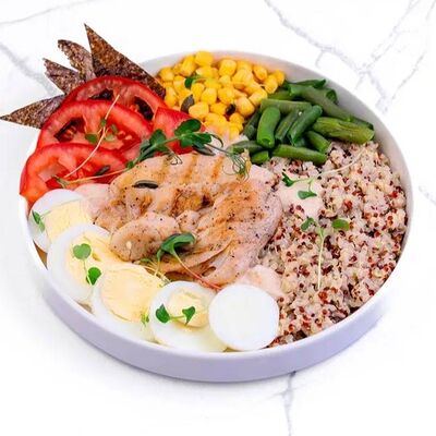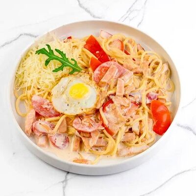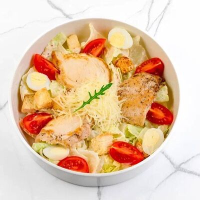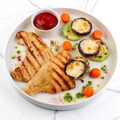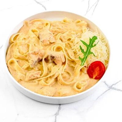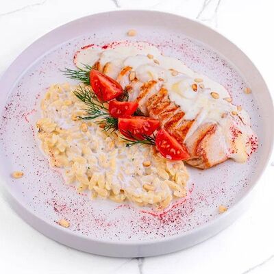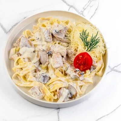 Куриное филе, соус наполи, помидоры, шампиньоны, моцарелла