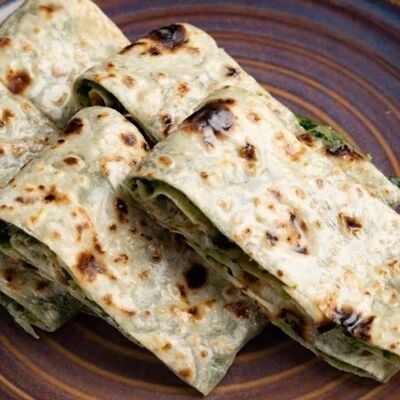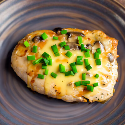 Куриное филе, грибы шампиньоны, сыр моцарелла, зелёный лук