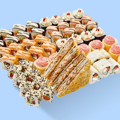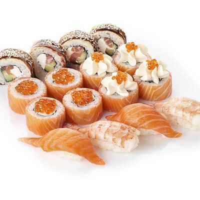 Рис, нори, огурец, угорь, соус Унаги, кунжут белый