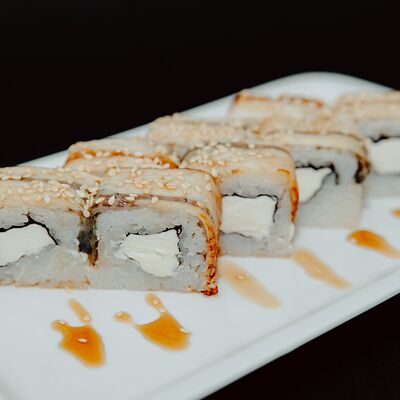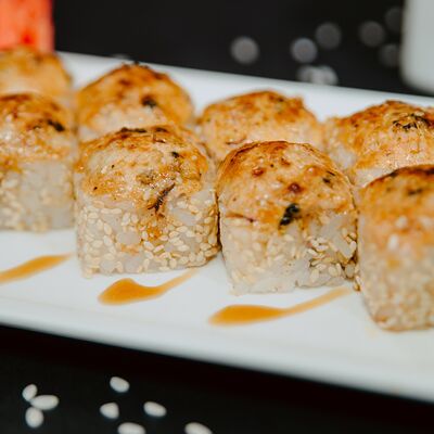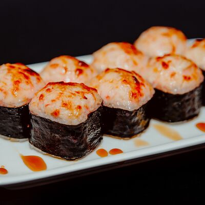 Лосось, омлет томаго, окунь, кальмар, спайси соус
