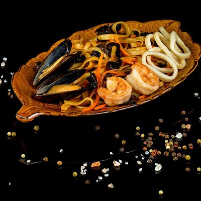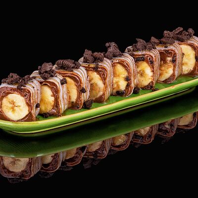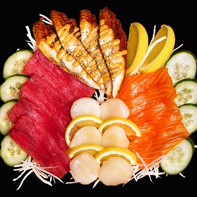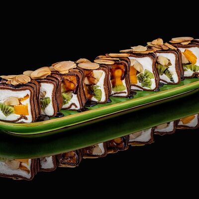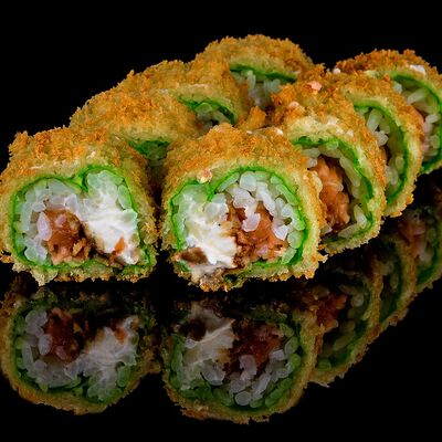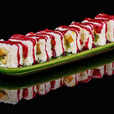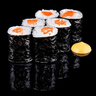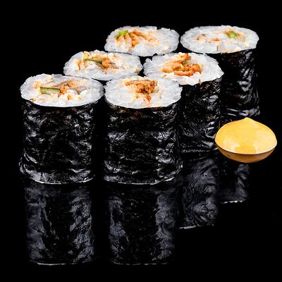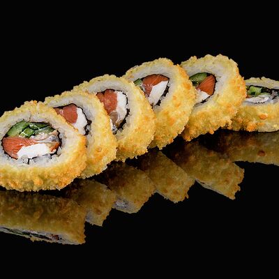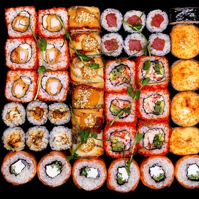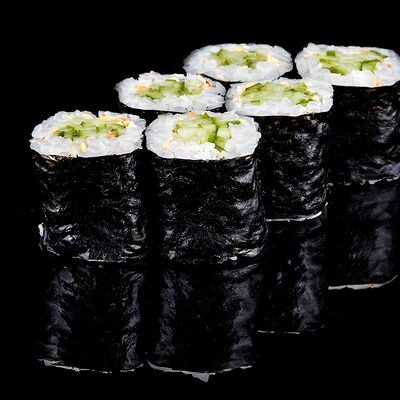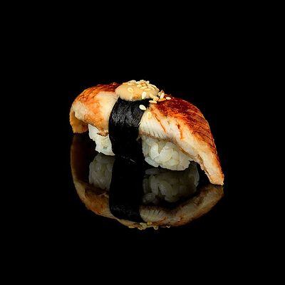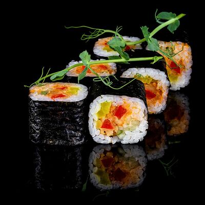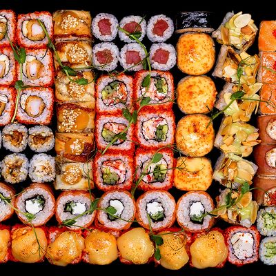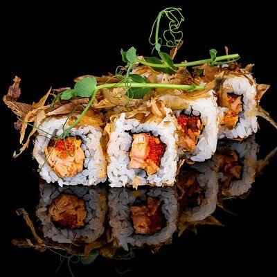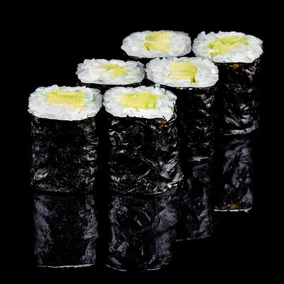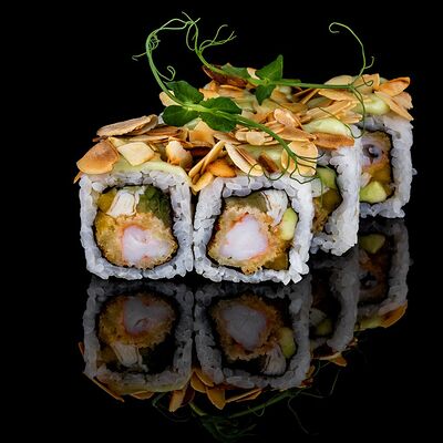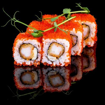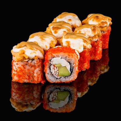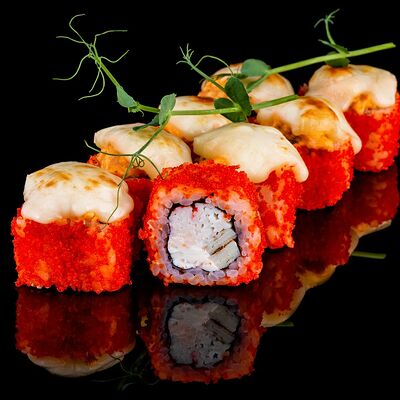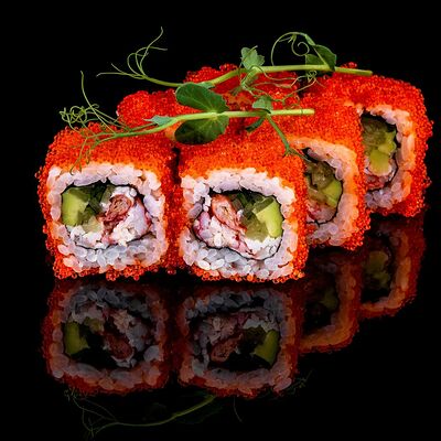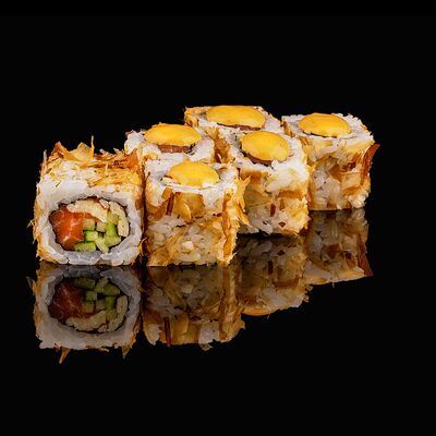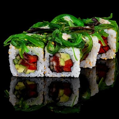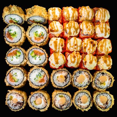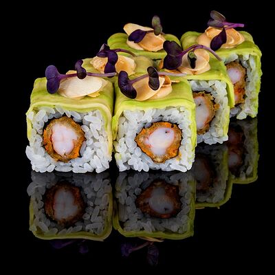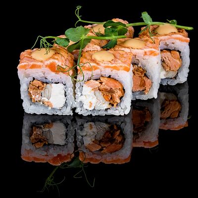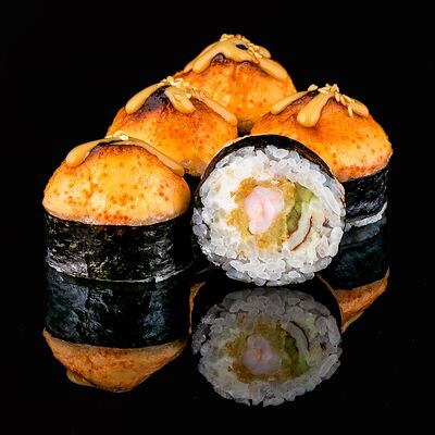 Рис, нори, сливочный сыр, авокадо, угорь, подкопченный лосось