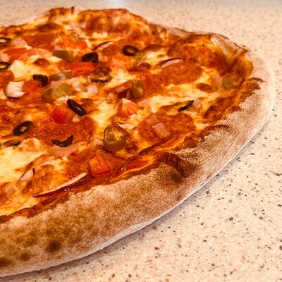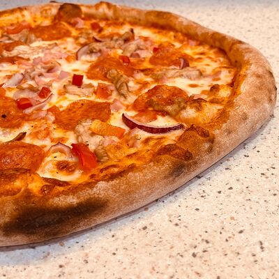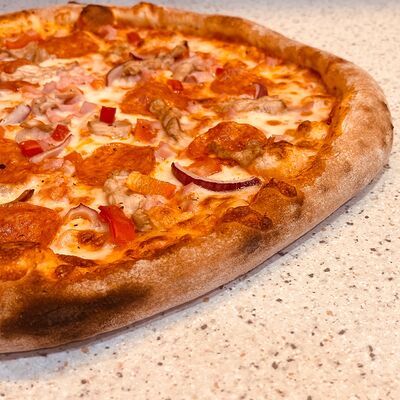 Сливочный соус, сыр моцарелла, груша конференц, сыр горгонзола, грецкий орех, мёд (33 см)