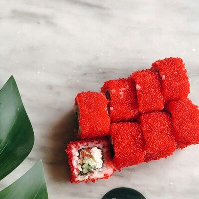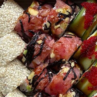 Ролл с тунцом и тобико в кунжуте доставка