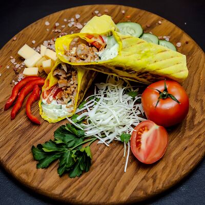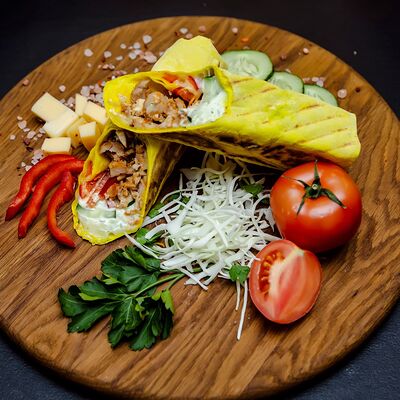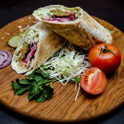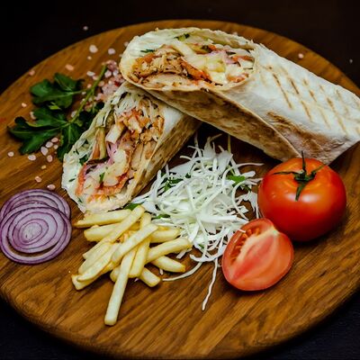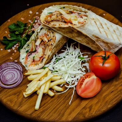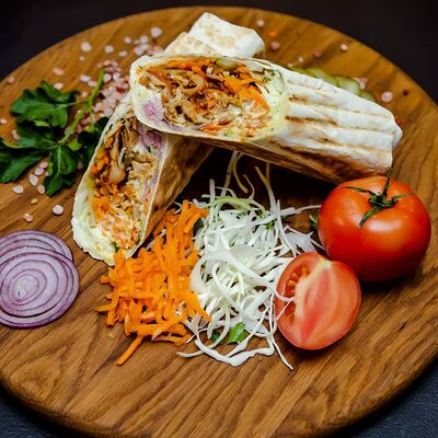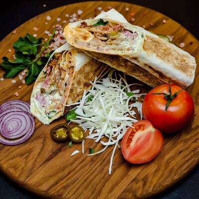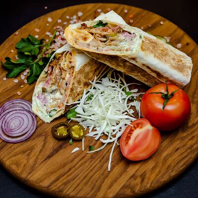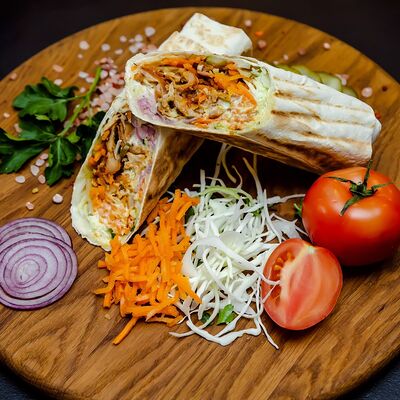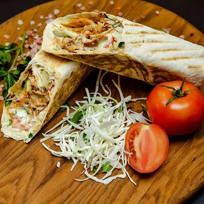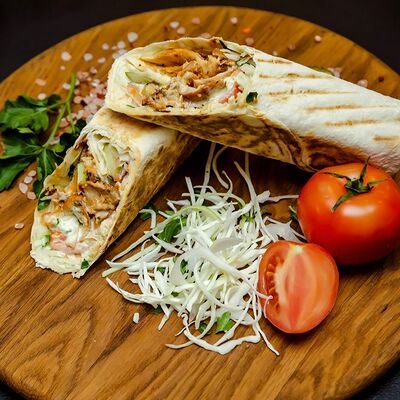 Курица гриль, капуста свежая, томат свежий, огурец свежий, фирменный соус, лаваш